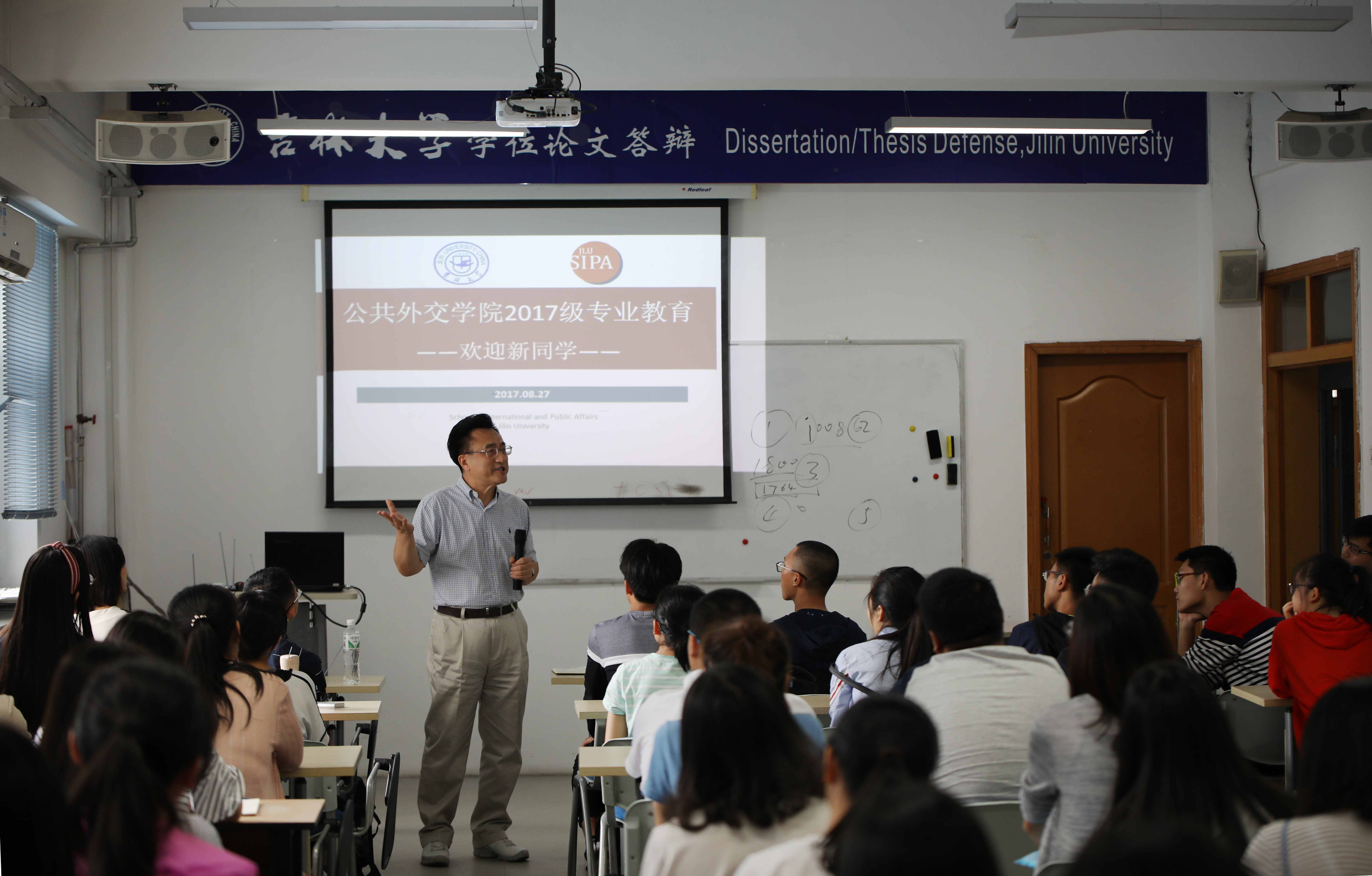 未来的发展规划做了详细的解读。随后,刘德斌老师从自身的学术经历出发,在谈话中与大家分享了在英美留学的经验、参加中外各类学术研讨会的广博见闻以及在多年治学过程中总结出来的深刻体会,着重强调了新生需要有心系天下的胸怀以及作为中华民族一份子,特别是作为一名外交学专业的同学更应该具有的民族责任感。