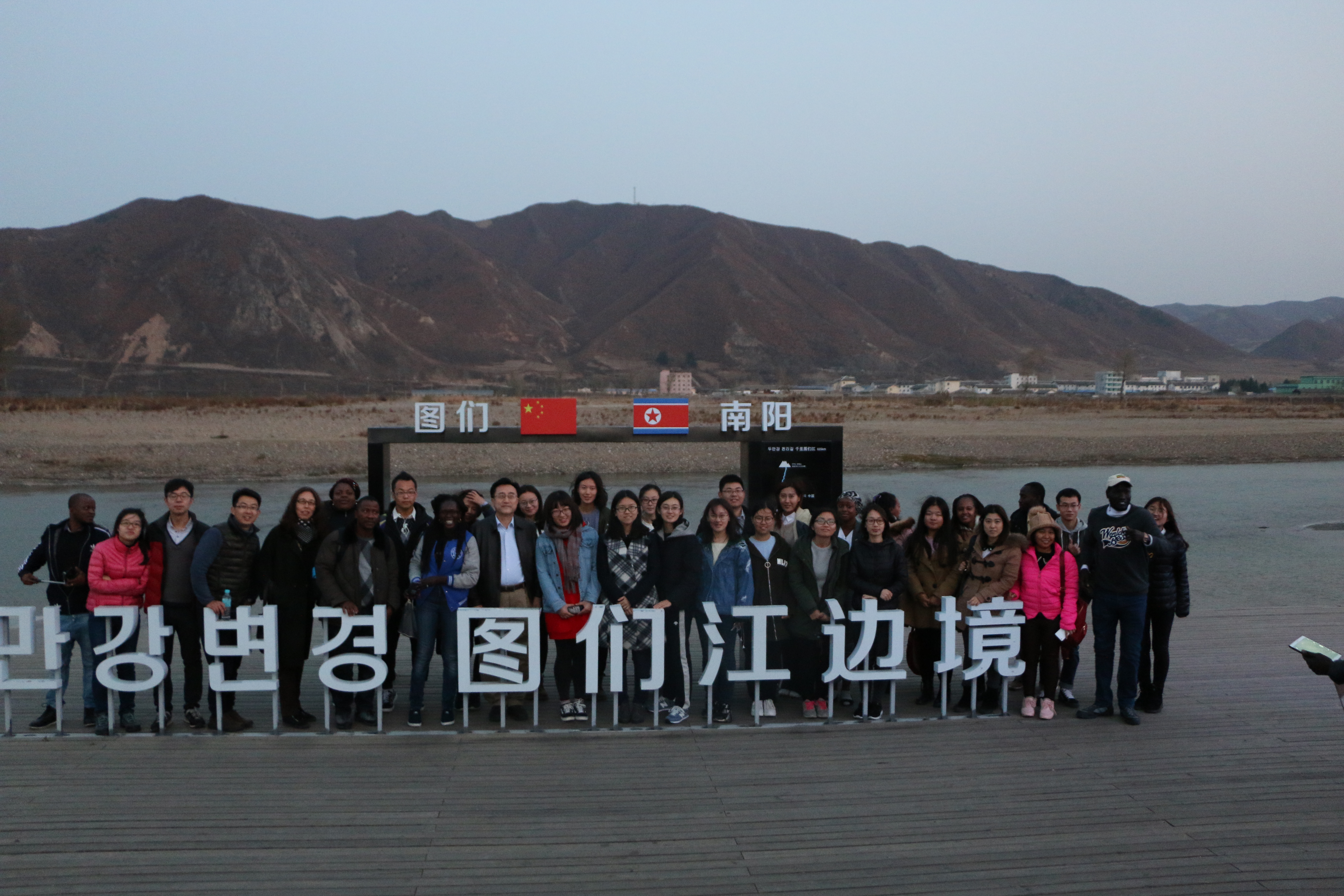 师生来到图们市,考察了中朝界河图们江,远望江对面的朝鲜南阳市。