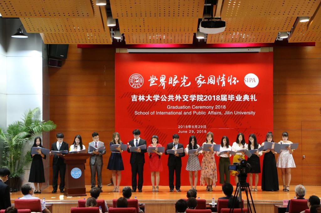 和母校的教诲,利用所学,积极投身到各自的工作中,为世界发展和人类共同的美好未来做出贡献!随后,中外学生献上诗朗诵、合唱《那些花儿》、《Imagine》等演出,抒发了对母校的依依不舍之情和大爱天下的人道关怀精神,将典礼的气氛推向高潮。