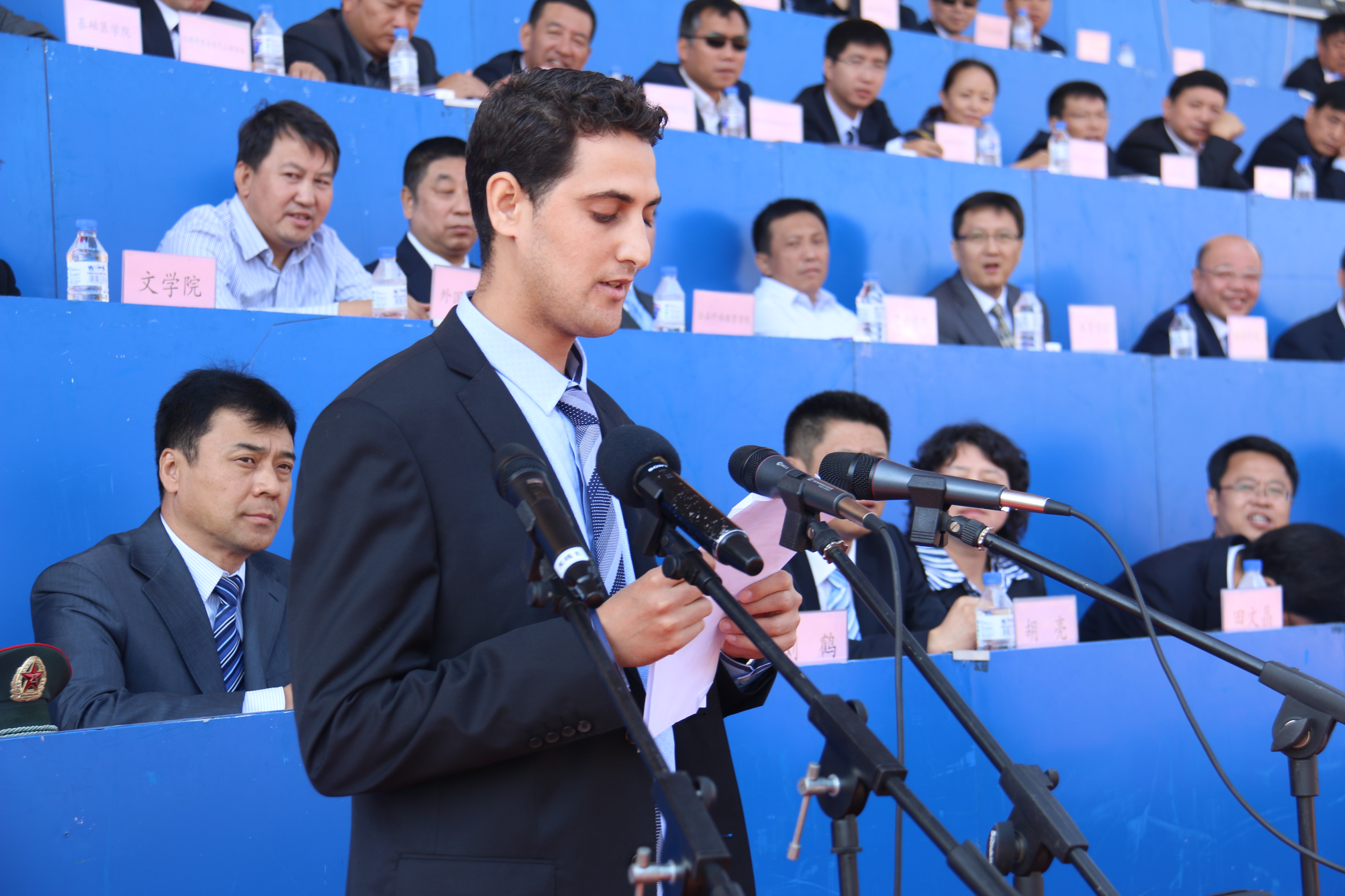 2014级国际关系专业硕士研究生摩洛哥籍的吉米代表全校留学生发言。他在发言中表达了对中国文化的热爱和对未来学习生活的憧憬。他在最后高喊“我爱中国、我爱博彩App