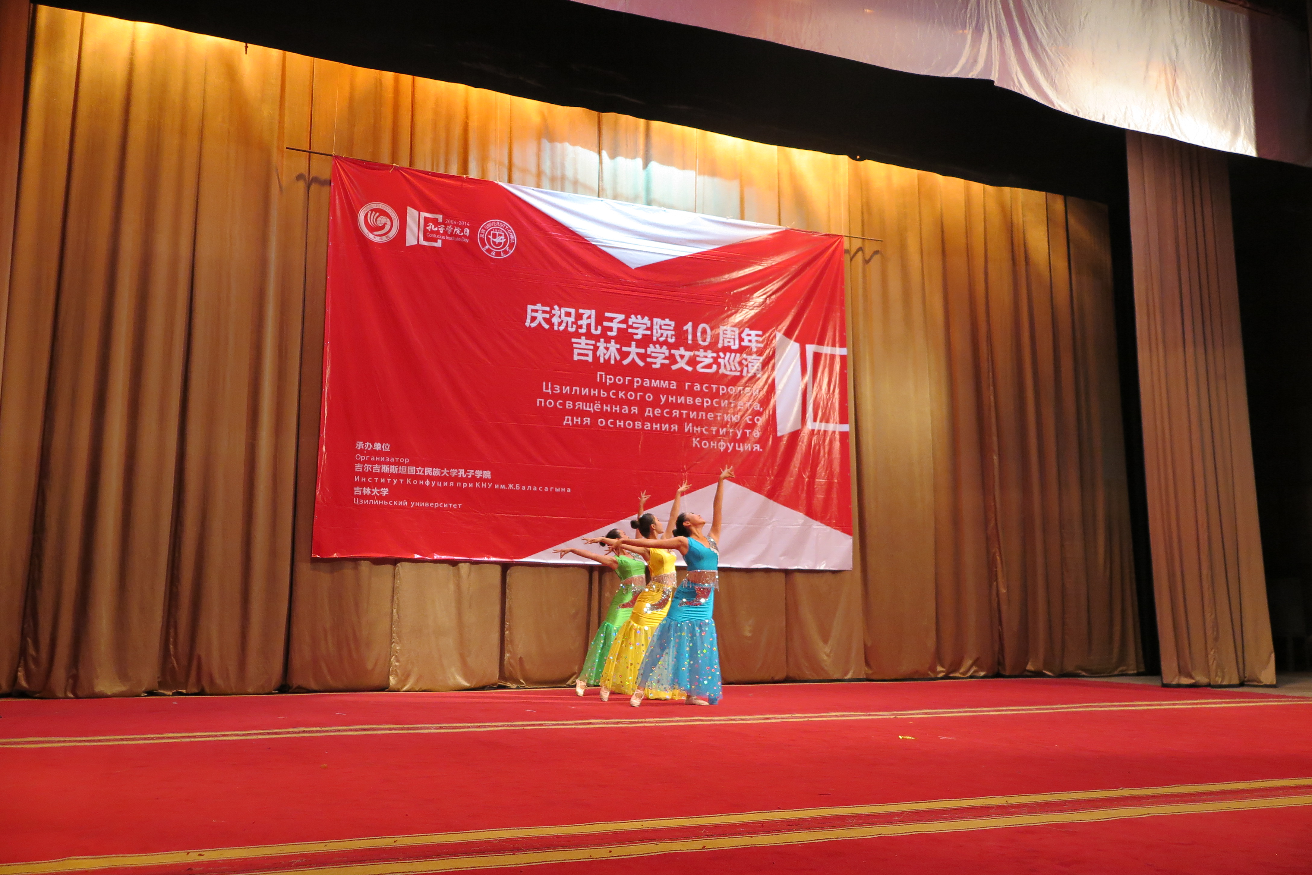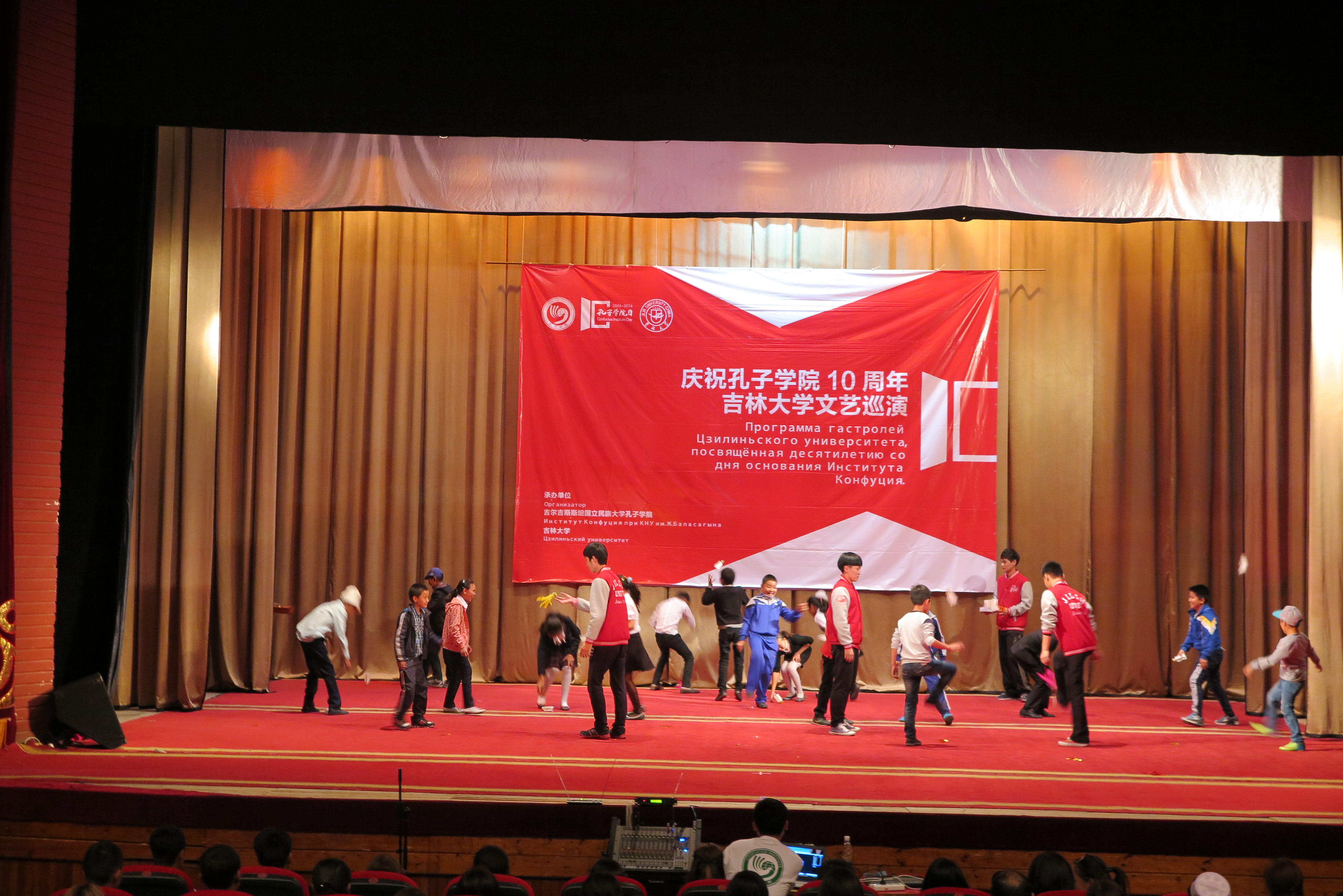 进行本次巡演的第四场演出。演出在吉尔吉斯斯坦国家民族话剧院举行。吉尔吉斯斯坦国家议会教科文体主席奥斯曼那里耶夫·卡内别克(Осмоналиев Каныбек)、中华人民共和国驻吉尔吉斯斯坦大使馆政务参赞任仕、中华人民共和国驻吉尔吉斯斯坦大使馆政治处主任郑海宁、比什凯克教育局局长美拉木卡诺娃·萨吾列(Мейрамканова Сауле)、孔院中外方院长等共同出席并观看了演出。