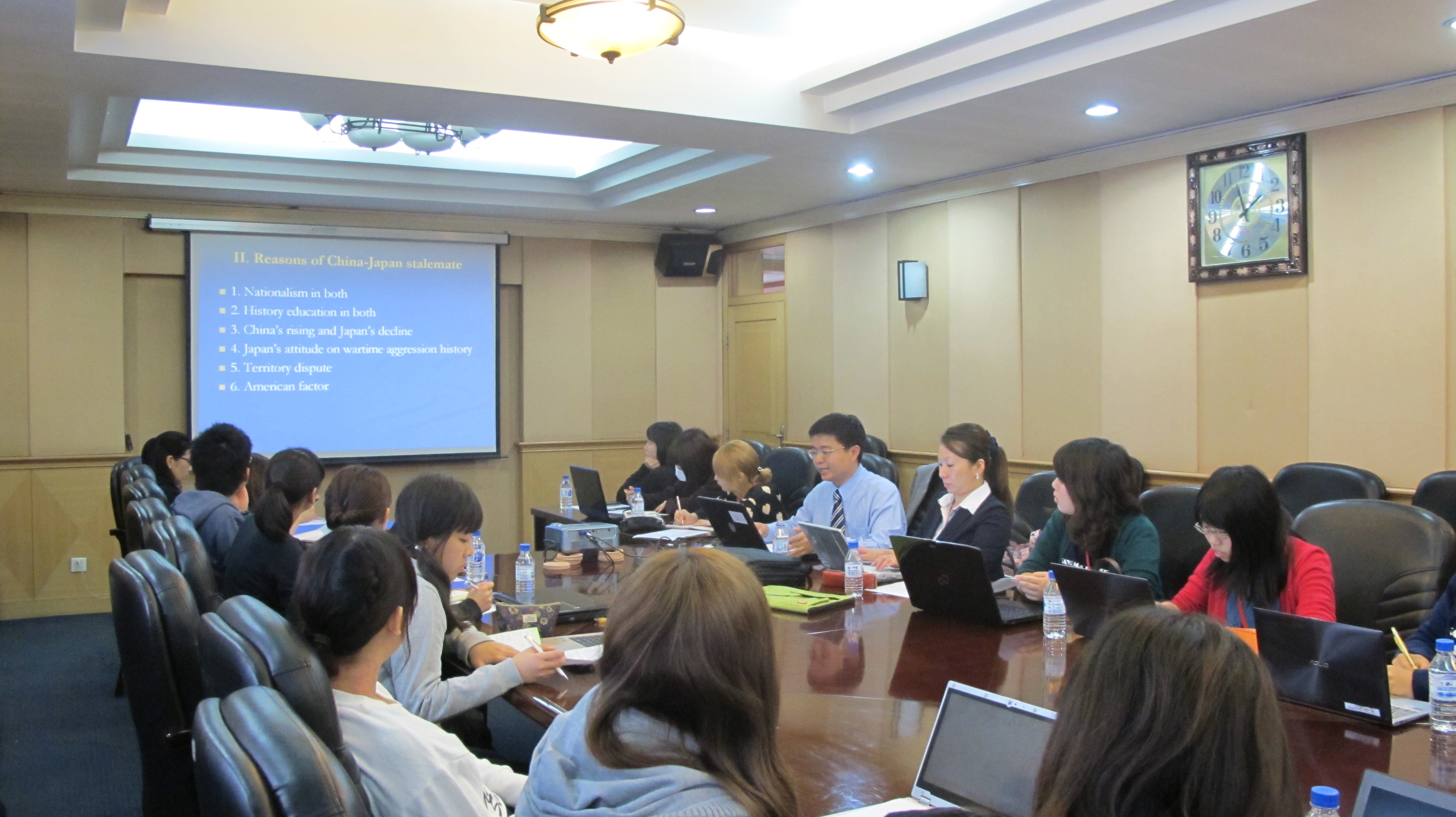 教师王黎教授分别从历史与现实的角度对中日两国的互动与交流进行阐释,并解答了同学们围绕该领域所提出的问题。活动结束前夕,冈山大学的同学们用PPT的形式回顾总结了几天来在长春的体验与收获,对博彩App