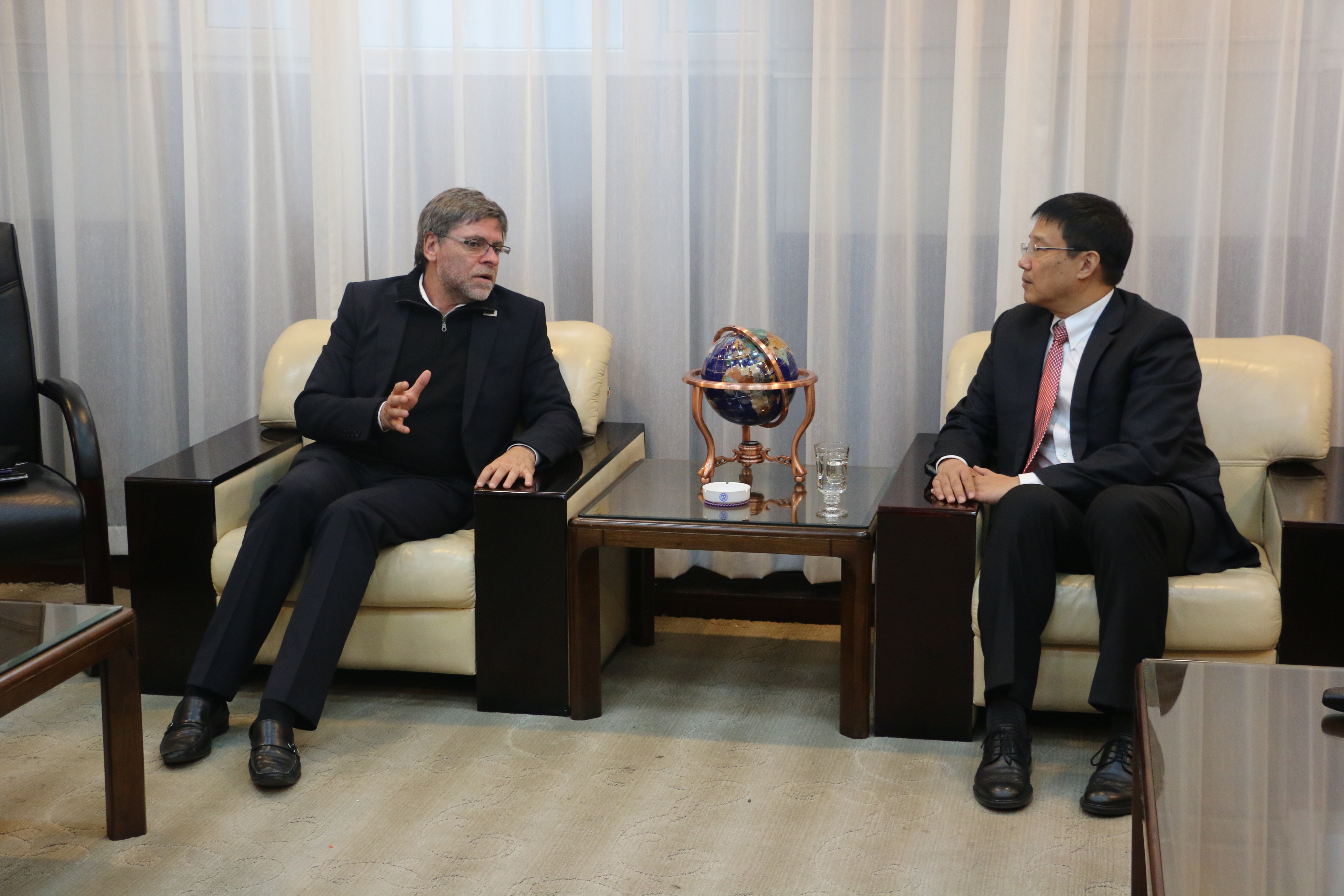 10月22日,美国堪萨斯州立大学副教务长马赛罗·萨巴泰斯(Marcelo Sabatés) 与教务长中国事务特别助理史记暑一行2人访问博彩App