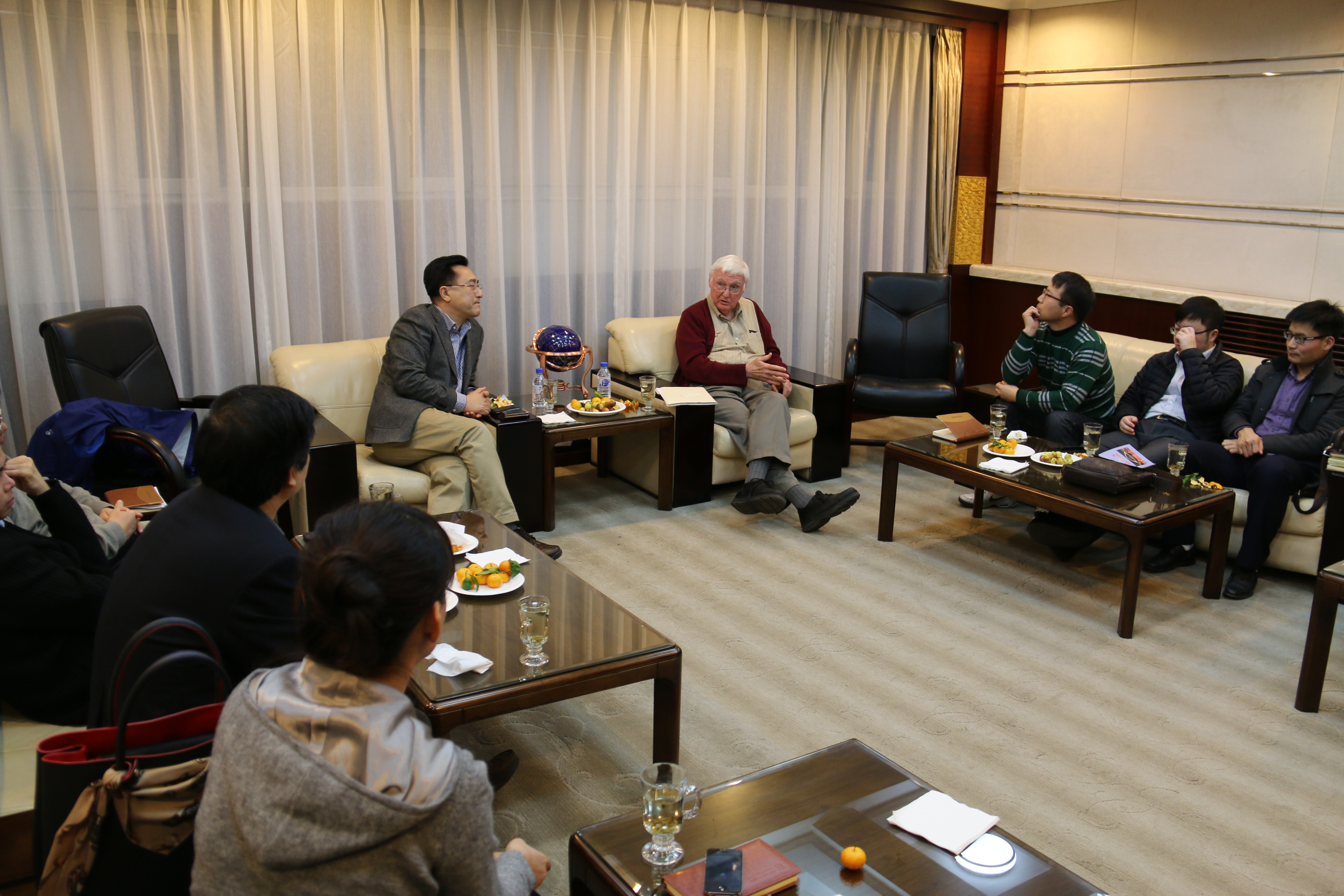 领导及教师团队与Stanly教授一起就其讲座内容及今后潜在的教学、科研合作进行了交流与讨论。Stanly教授在谈话中强调了当今地理学的新发展与跨学科属性,并将地理学与国际关系学的交叉与联系进行了梳理。与此同时,应博彩App