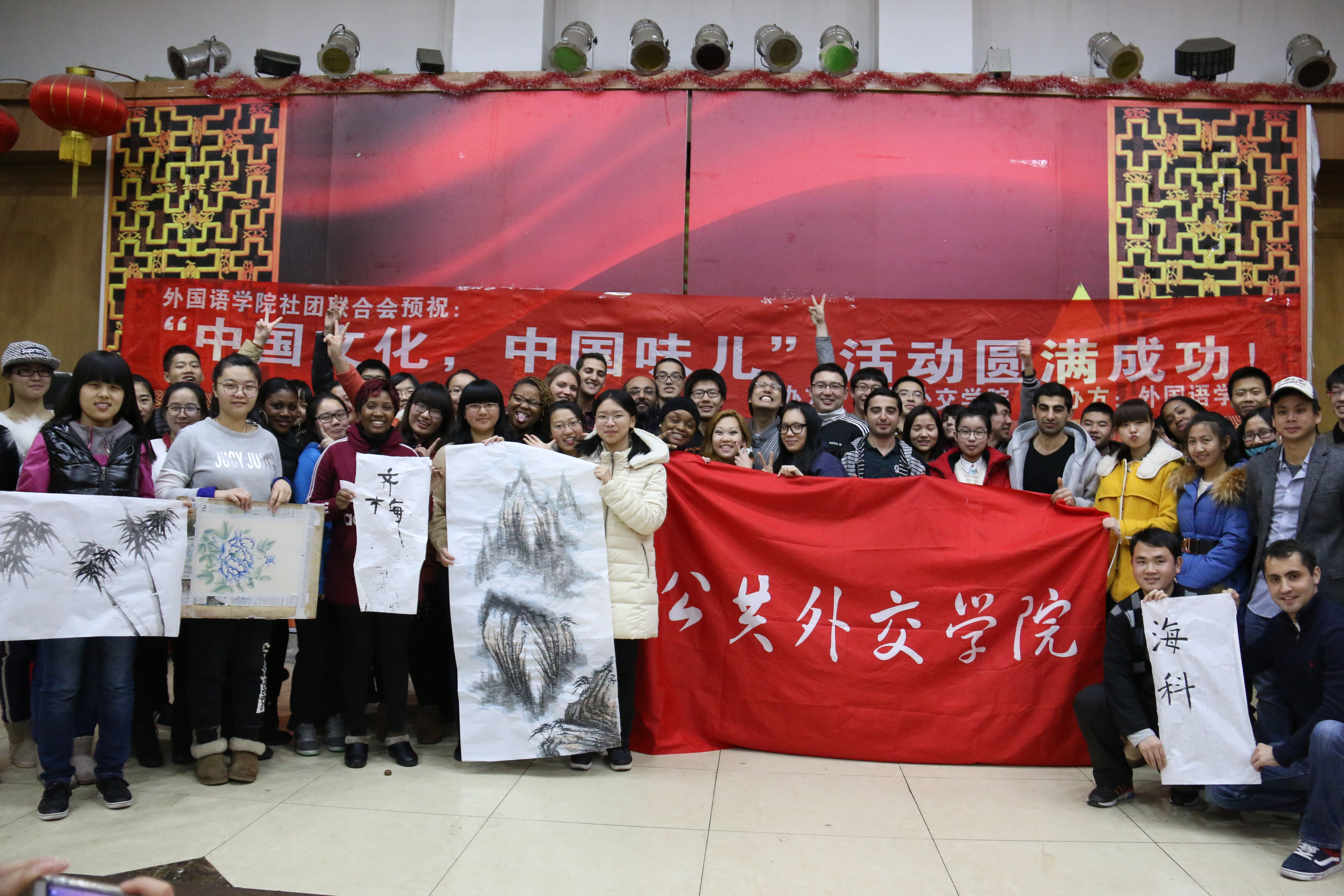的同学在友谊会馆一楼开展了“中国文化中国味”主题活动。大家在一起包饺子,学写毛笔书法,欣赏中国绘画。