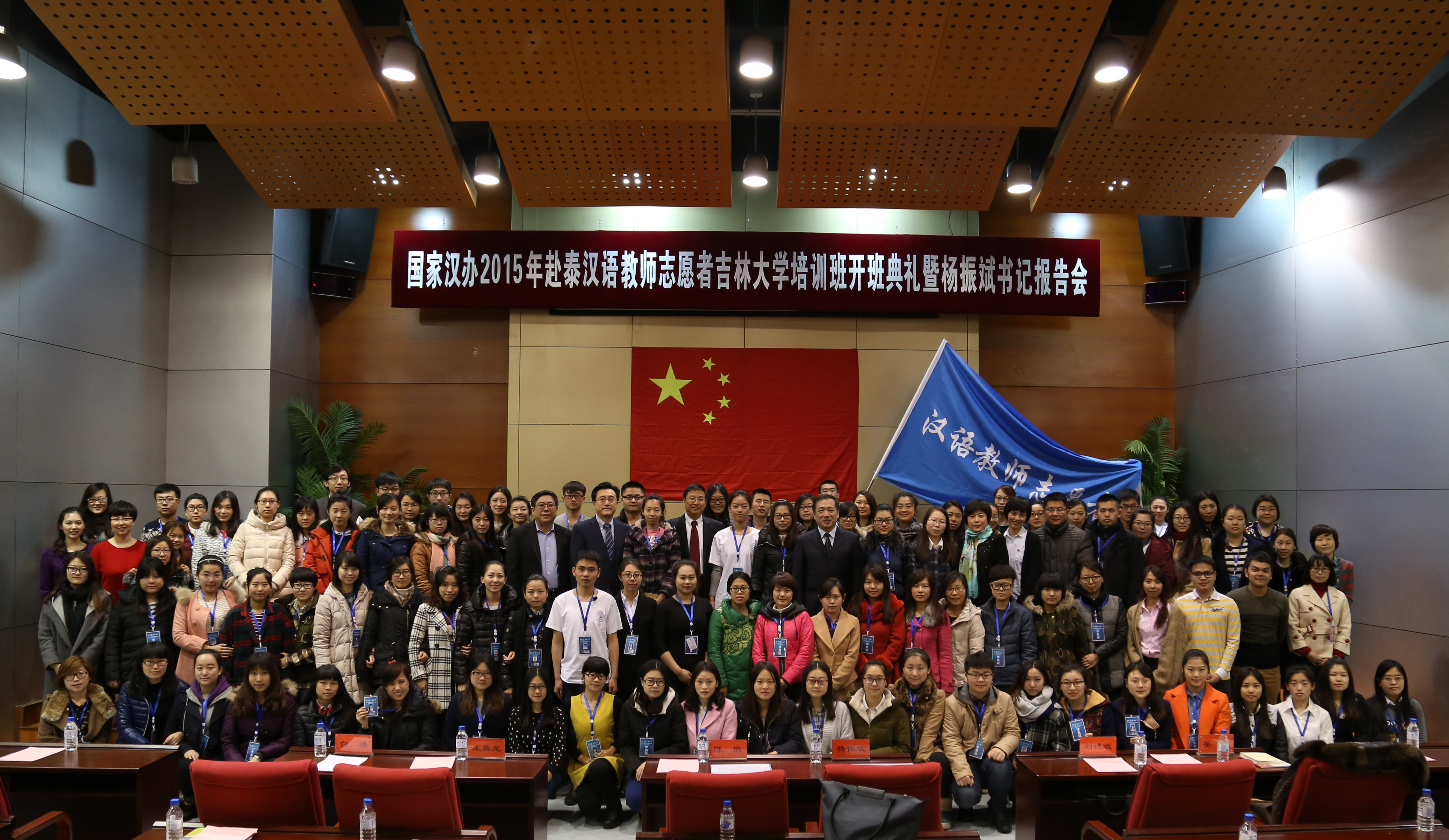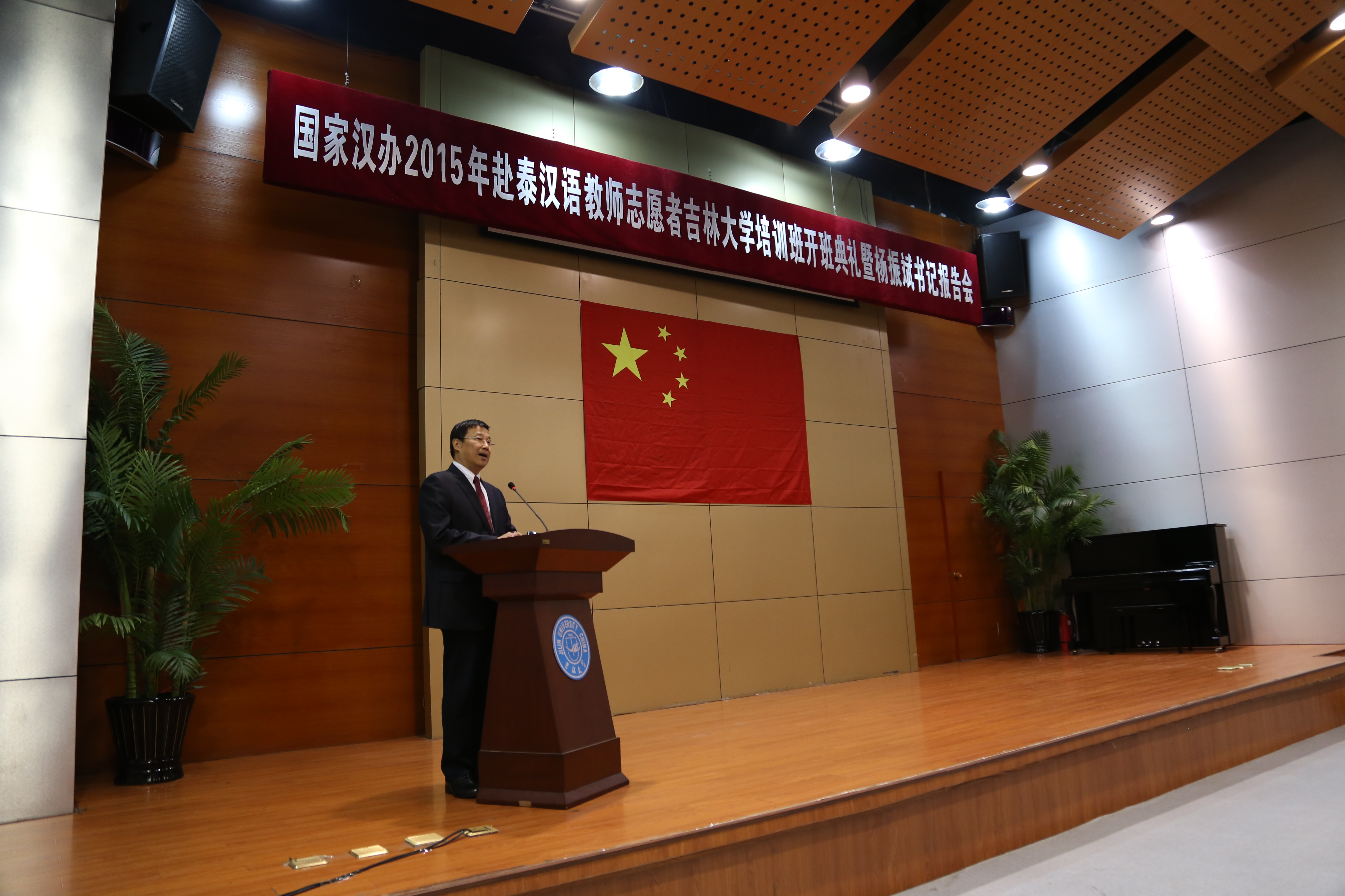 国际汉语教育东北基地学术报告厅举行。校党委书记杨振斌为培训班授旗并为培训学员作报告。博彩App