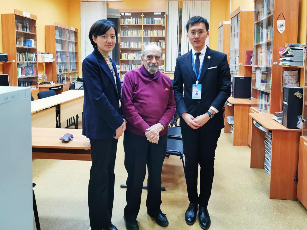 中方院长单妮娜老师的引荐下,带队老师乔蕊与代表团成员刘治辰对梁赞国立大学外国语博彩App