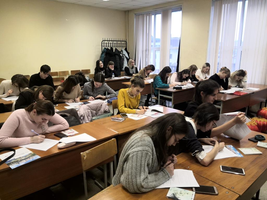调研团组现场发放调研问卷,梁赞孔院同学们认真填写问卷,并和调研团组成员分享了他们在孔子博彩App