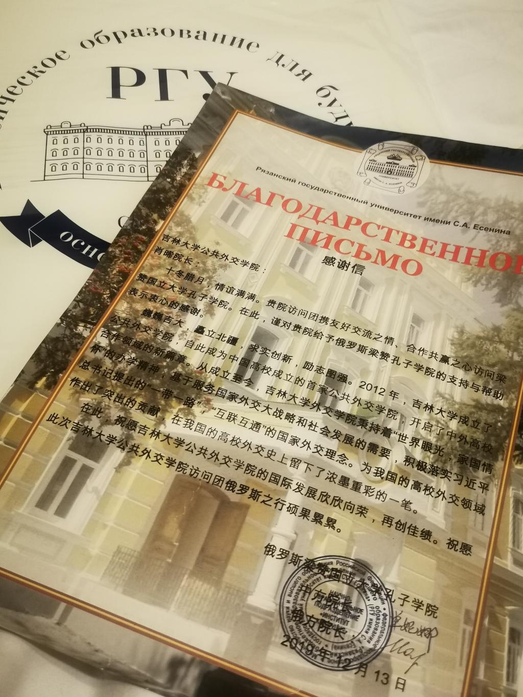学生代表向梁赞大学孔子博彩App