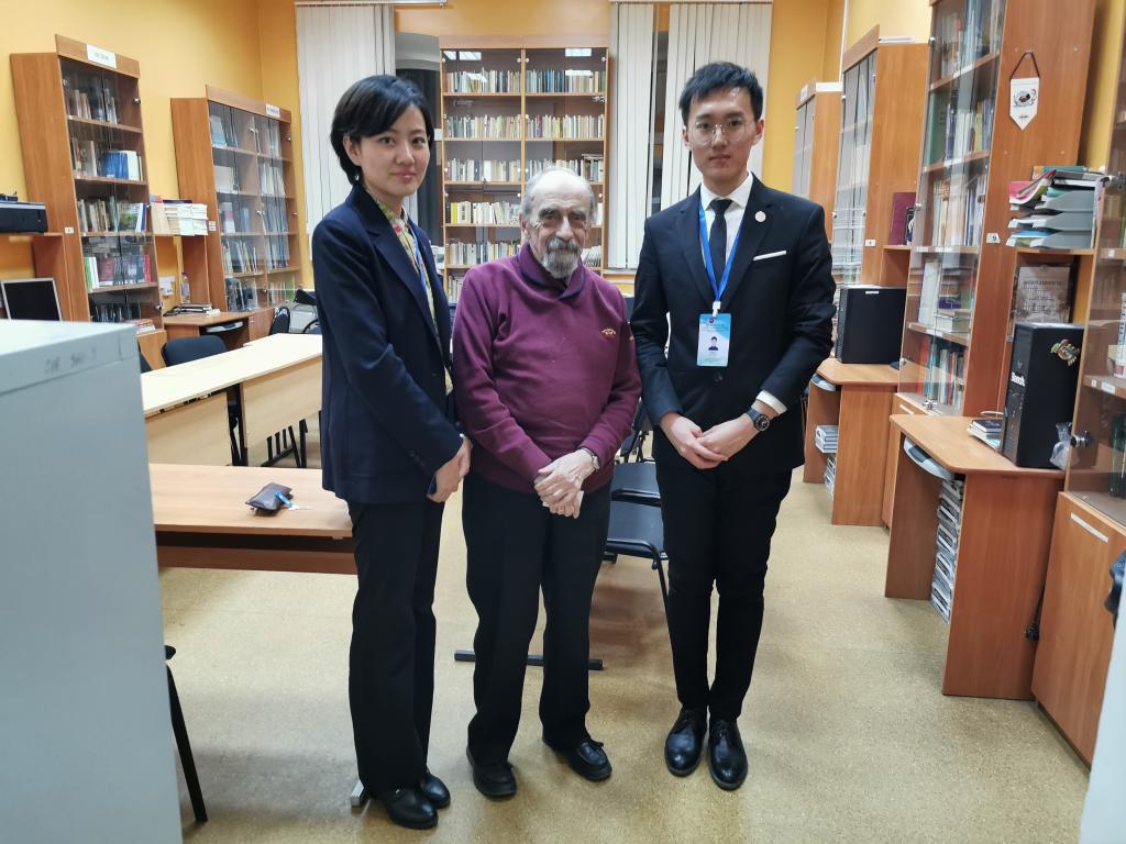 的课堂教学,分别是俄方扎普鲁德诺娃老师讲授的初级班汉语课程和中方志愿者教师魏榕辰讲授的高年级汉语实践课程。两位老师教学经验丰富、了解俄罗斯学生的特点、讲授内容生动形象,课堂气氛活跃。与此同时,乔蕊老师、刘治宸同学则在单妮娜院长陪同下拜访了梁赞国立大学德高望重的雅·玛·科尔格尔教授,他在梁赞国立大学孔子博彩App