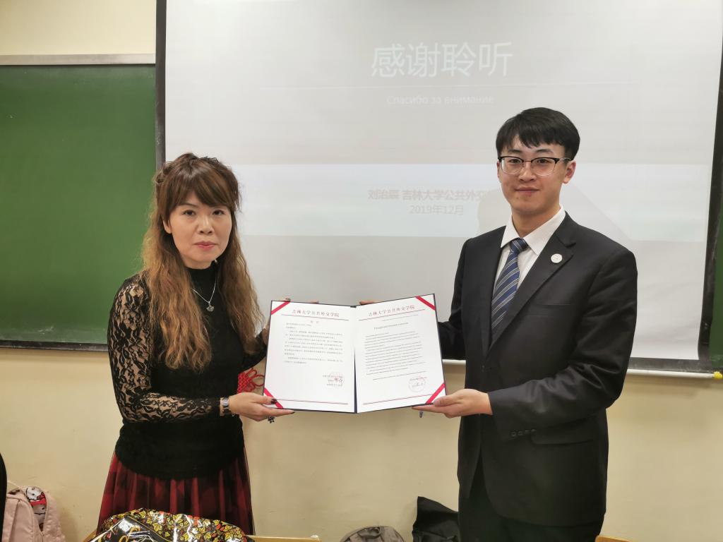 随后,乔蕊老师以“面向新时代的中俄人文交流”为主题为在场师生做报告。报告分三个部分,分别为“中俄新时代全面战略协作伙伴关系”、“中俄人文交流现状”及“时代的我们:推动中俄人文交流的青年之路”。2019年6月5日中俄首脑将两国关系提升为“新时代中俄全面战略协作伙伴关系”,中俄关系迎来了新高度、新机遇,也将承担新的担当。而新时代的中俄关系,必须大力促进民心相通,夯实世代友好的民意基础。在这样的大背景下,乔蕊老师以吉林省为例介绍了中俄人文交流的情况,博彩App