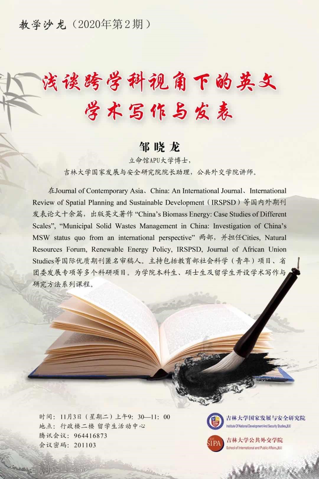 青年教师邹晓龙以《浅谈跨学科视角下的英文学术写作与发表》为主题,与老师、同学们分享了自己在学术写作与发表的经验与心得。