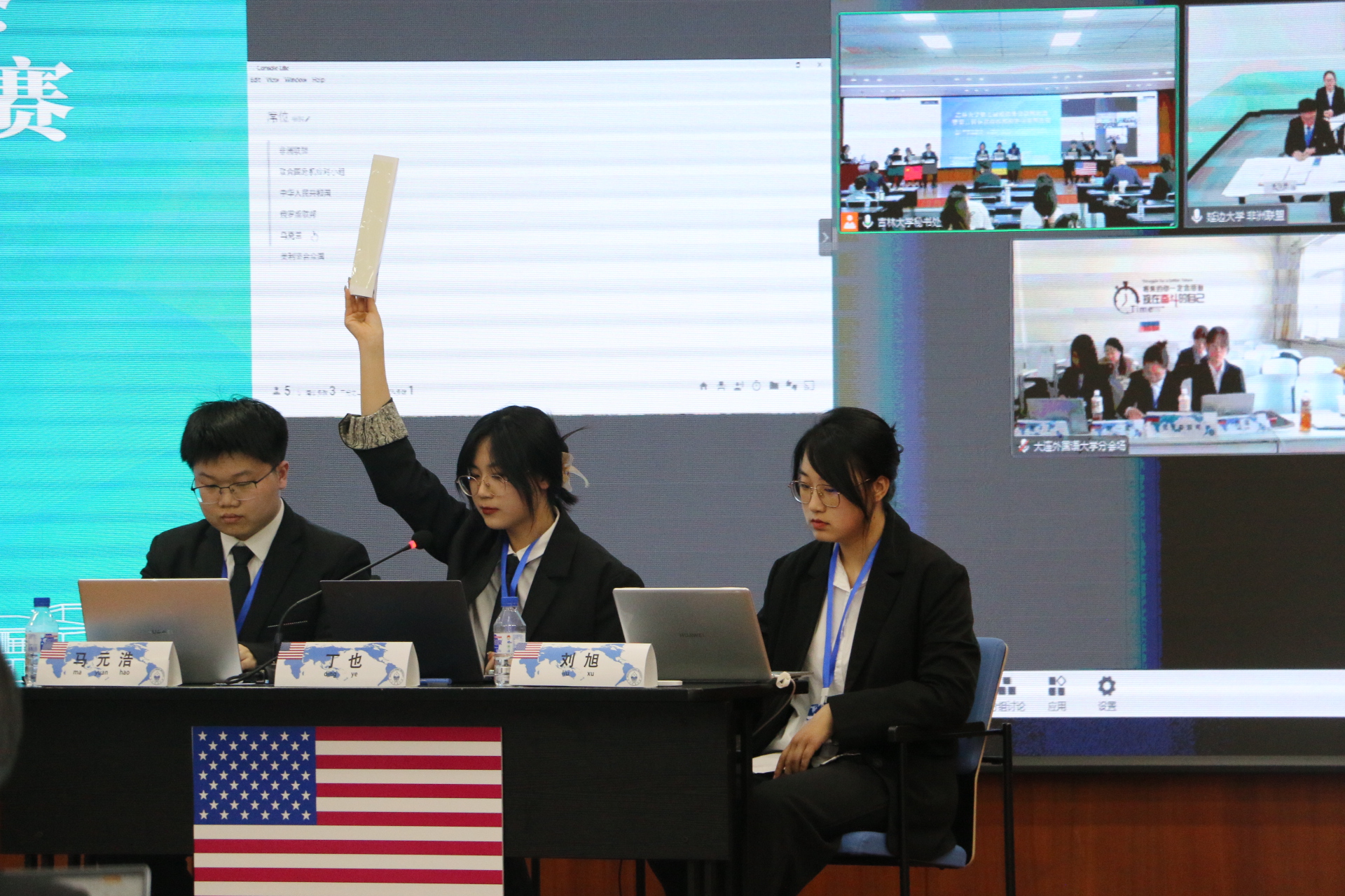 1队、延边大学代表队获得优秀团队奖,大连外国语大学代表队、黑龙江大学代表队获得荣誉团队奖,同时,丁也等5名选手获得“优秀谈判官”称号、马元浩等3名选手获得“优秀新闻官”称号,姜玲玉等5名选手获得“优秀记者”称号。
