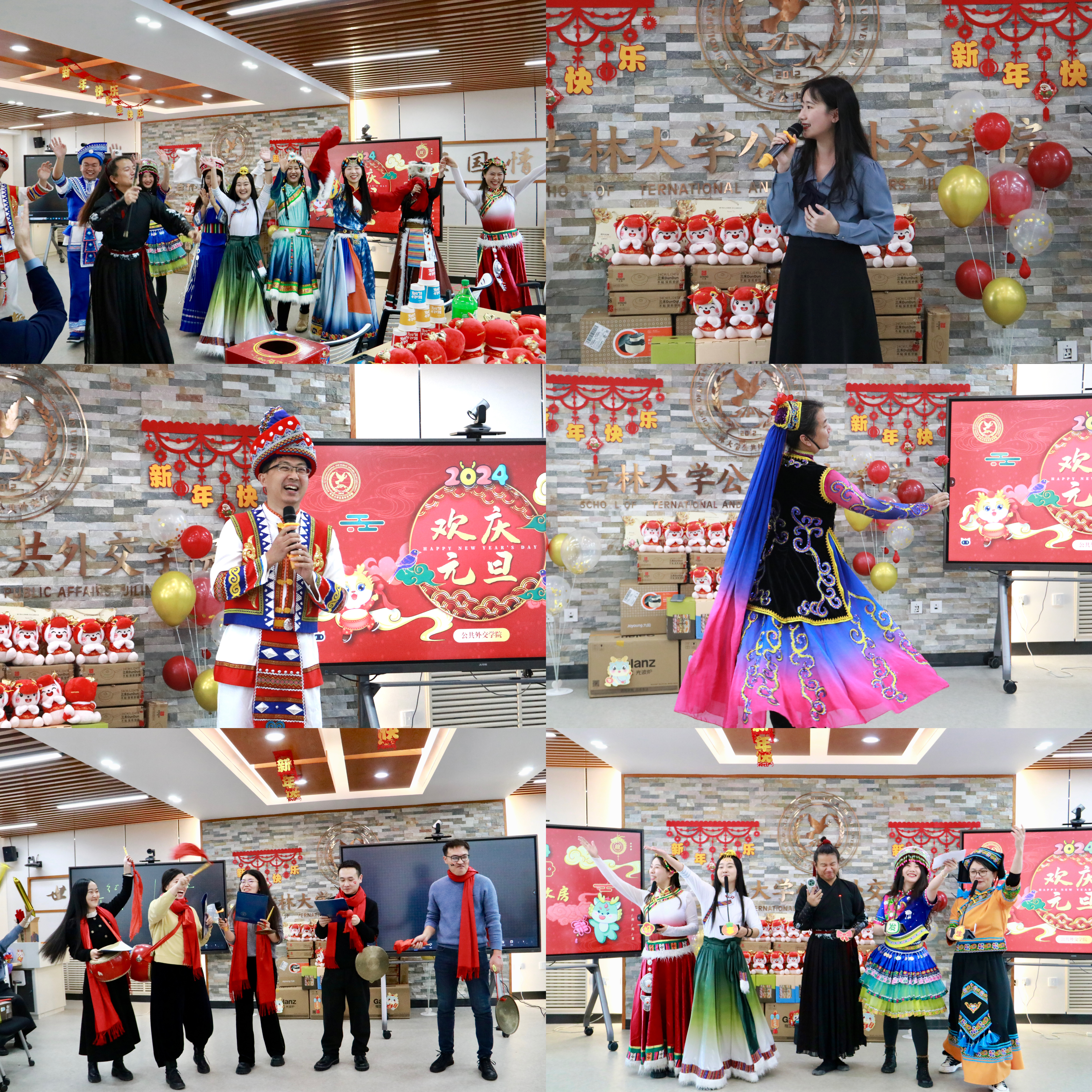 在中心校区吕振羽楼818室举办“璀璨外交 温暖启航”2024年教职工新年联欢会。活动现场气氛热烈、暖意融融。博彩App