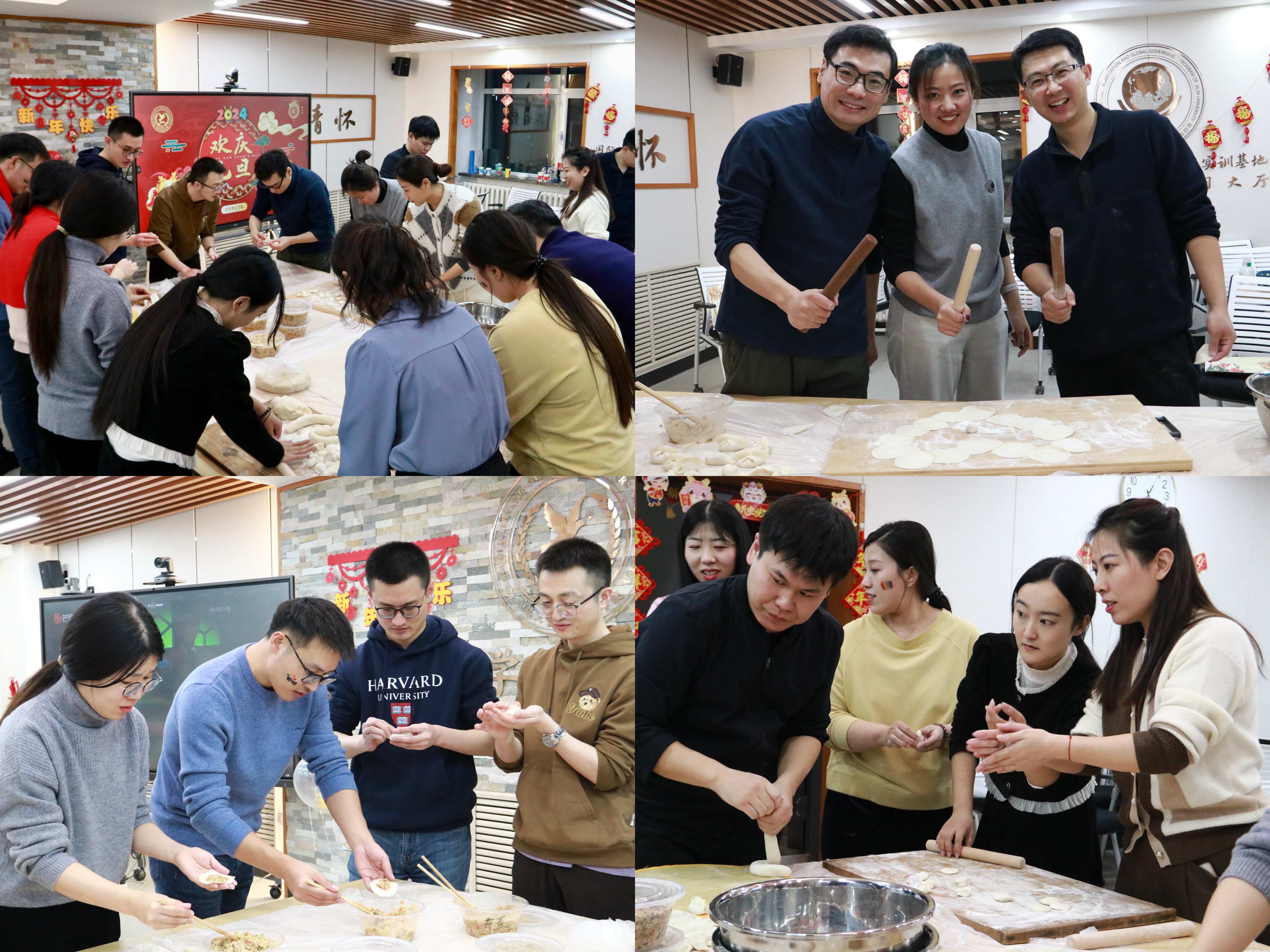 还为全体教职工贴心准备了“包饺子”活动,让大家在寒冬中感受浓浓暖意。活动期间,教师们相互切磋包饺子技巧,展示了花样包饺子法,包括柳叶饺、元宝饺、花边饺等。不一会儿,种类繁多、形状各异的饺子摆满了案头。教职工们一同品尝热气腾腾的饺子,感受“家”的温馨。