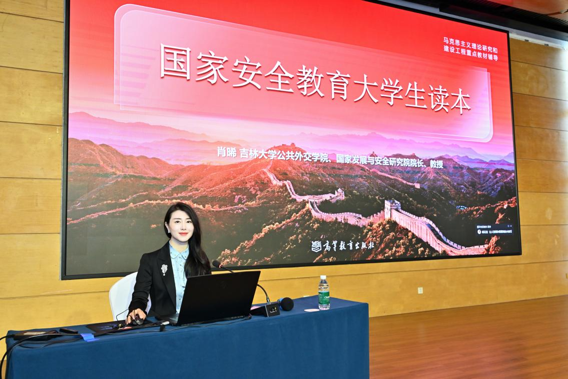 此前,高校教师国家安全教育培训班已举办两期,肖晞教授参加授课。2024年9月24日,由教育部教材局主办的“2024年第7期教材建设和管理国家级培训班(任课教师)”在北京师范大学珠海校区举行。来自全国各省、自治区、直辖市、新疆生产建设兵团教育行政部门相关负责人以及高校教师代表共200余人参加。肖晞教授受邀为该培训班学员进行授课,讲解《国家安全教育大学生读本》第八章“坚持以促进国际安全为依托”的相关内容,反响热烈。