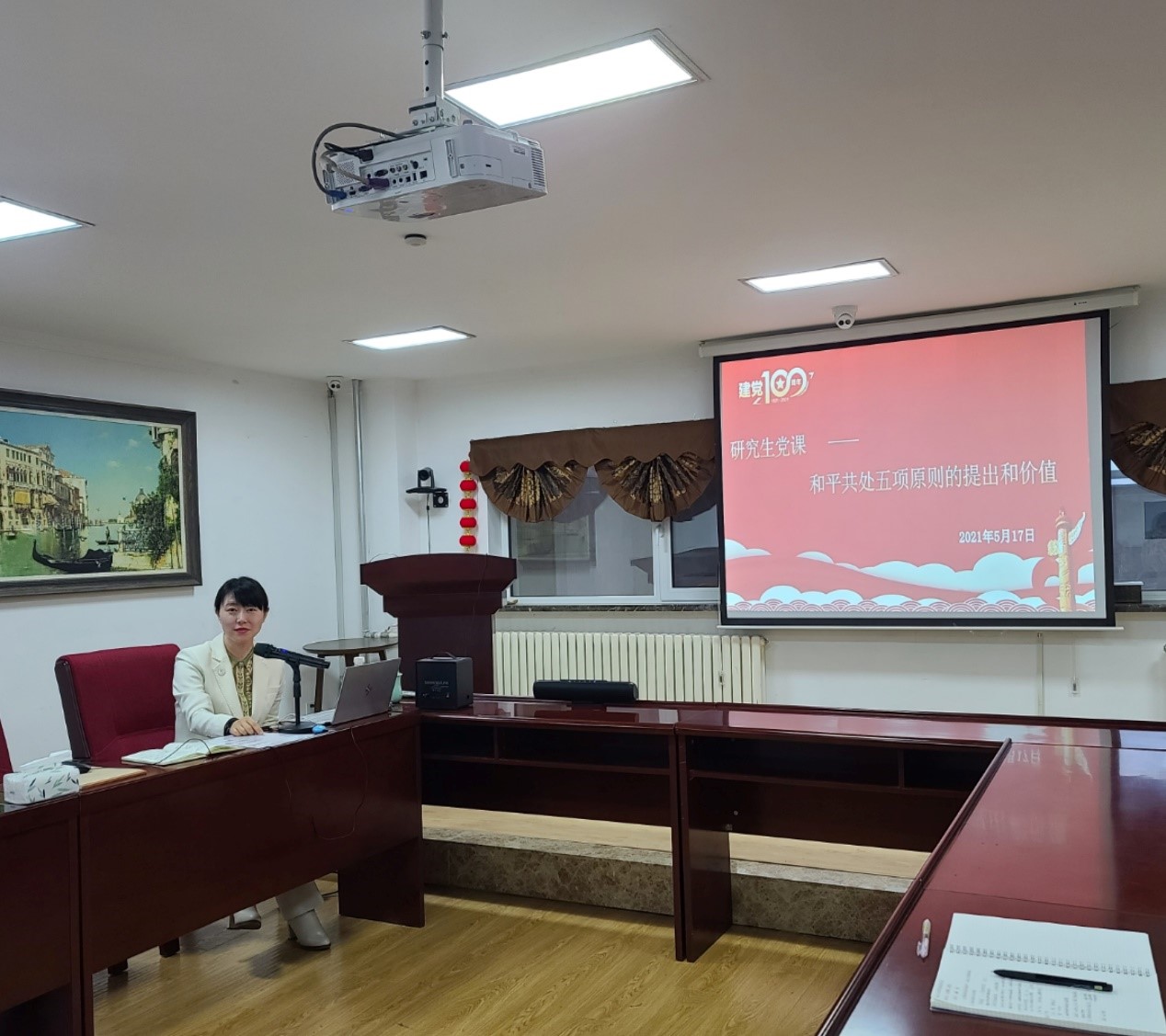 为深入学习与理解中国共产党百年党史,深刻铭记中国共产党在百余年间为中国人民奋斗的伟大历程,5月17日和19日,博彩App 院长、国家发展与安全研究院院长肖晞为博彩App 和国家发展与安全研究院硕士、博士研究生讲授了题为《和平共处五项原则的提出和价值》的党课。
