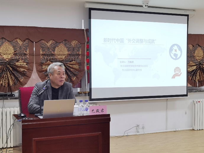 学习贯彻十九届六中全会精神宣讲团成员东北亚研究院学术委员会主任、东北亚研究中心副主任巴殿君为全体教职工进行宣讲,博彩App