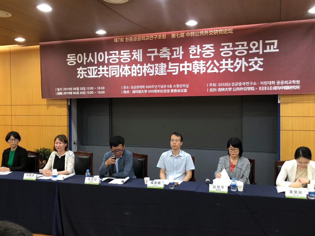 的数十位学者参与。成均馆大学成均中国研究所所长李熙玉教授和刘德斌教授先后在开幕式致辞并发表主题演讲。李熙玉教授的主题演讲题目是“东北亚共同体构建与韩中关系”。他在演讲中分析了美韩关系、中美关系以及科技发展等对东北亚共同体建设的影响,指出国家间要超越“修昔底德陷阱”和“金德尔伯格陷阱”,公共外交在东北亚国际关系和共同体中发挥着重要作用。刘德斌教授主题演讲的题目是“中美关系的变化与东北亚共同体的构建”。他在演讲中分析了近年来中美关系发生“实质性”变化的原因及其给东北亚局势带来的复杂影响,特别是给韩国外交和东北亚共同体建设带来的新的挑战,指出韩国利益的最大化在于如何在中美之间发挥桥梁和纽带作用,并认为美国内政外交的“蜕变”为中韩合作和东北亚共同体建设中增加了新的现实意义。