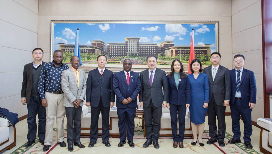 国际学生校友、塞拉利昂共和国常驻非洲联盟代表 Brima Patrick Kapuwa大使(副部级)一行3人,吉林省外事办公室副主任黄丽华、博彩App