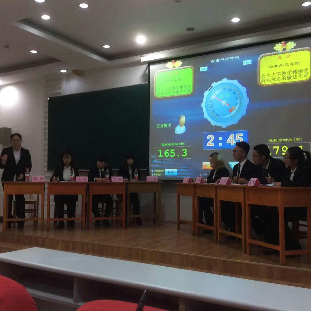 辩论队围绕“公立大学教学楼接受商业冠名的做法是否可取”的主题展开了辩论。