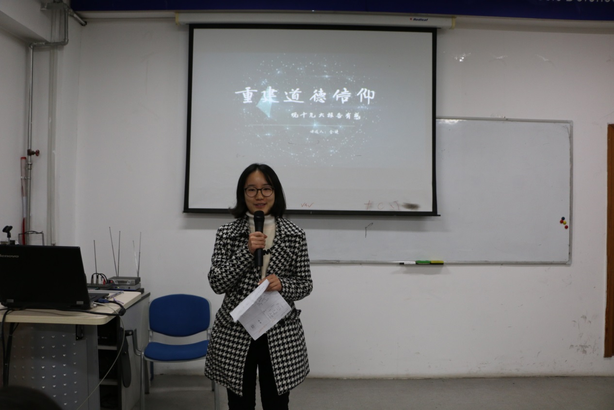 选手们的展示以PRE的形式展现,在现场的竞赛中,他们精心准备的PPT赢得了观众们的阵阵掌声。选手们的演讲激情澎湃,展现出了新时代外交系学子向上奋发的精神面貌和意志品质。题材从总体阐释十九大、以诗词品读十九大到十九大反腐倡廉、重塑信仰体系,涵盖面广,内容丰富精彩,体现出17届外交系学生的家国情话和人文素养。比赛精彩而气氛融洽,现场不时传来阵阵掌声。