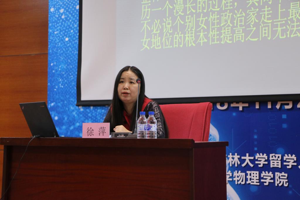 世界史系徐萍教授作为“当代国际舞台上女性政治家的权力巅峰之路”的讲座,博士兼职辅导员孔泽鸣老师主持了本次活动。