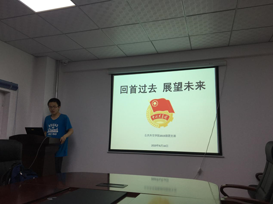 2015级团支部于6月14日在行政楼会议室举办了“回首过去 展望未来”主题团日活动。毕业年级辅导员张淑艳老师出席了本次活动。