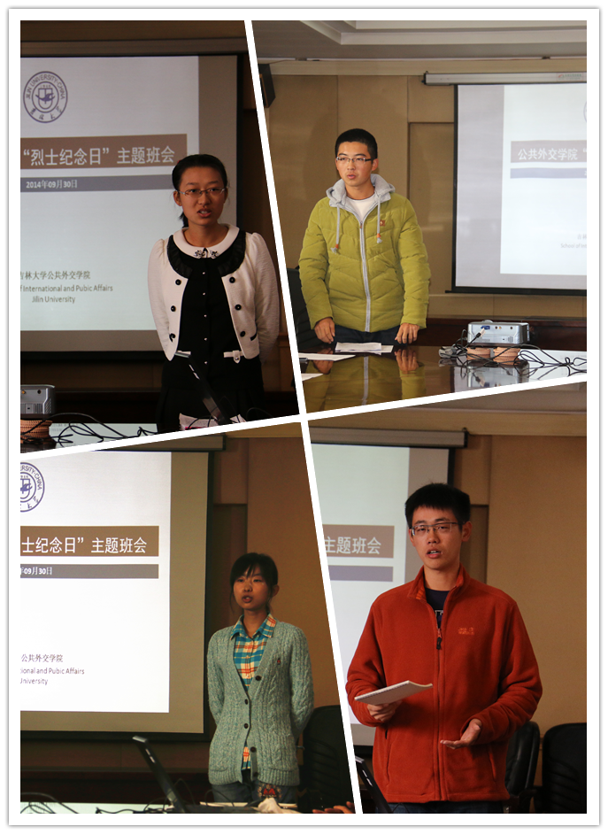 举行了“烈士纪念日”主题班会,并将主题班会与14级班委选举结合起来,参加班委竞选的同学的演讲各具特点,精彩纷呈。有通过介绍自己担任学生干部的工作经历来获得大家认可的;有通过展示自己的性格和人际关系优势来得到大家支持的;有希望凭借为集体服务的渴望和对未来班级工作的设想来赢得选票的。每位上台的竞选者,或忐忑紧张,或热情自信,他们的演讲都赢得了现场同学们的阵阵掌声。在发表自己的竞选演说的同时,候选人们也纷纷感悟英烈精神,缅怀烈士功绩,抒发了自己的爱国情怀,大家表示要为祖国的发展和实现中国梦而奋斗。