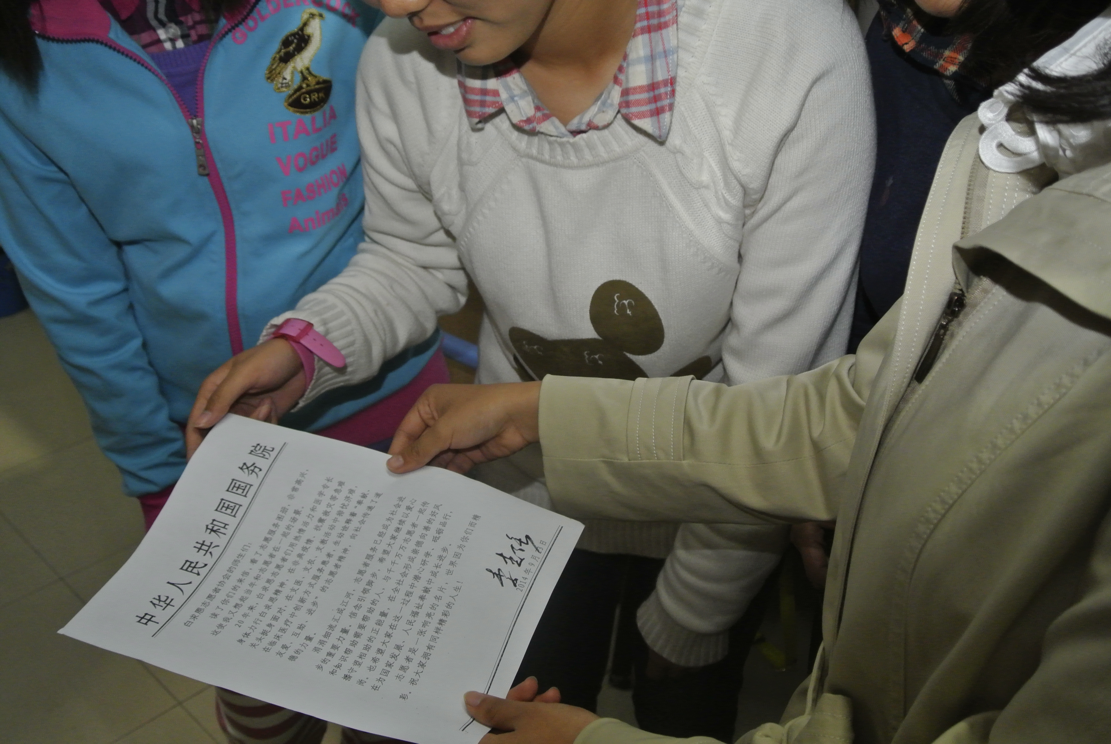 女生仔细阅读学习了李克强总理回给白求恩志愿者协会的信。李克强总理在信中高度赞扬了博彩App