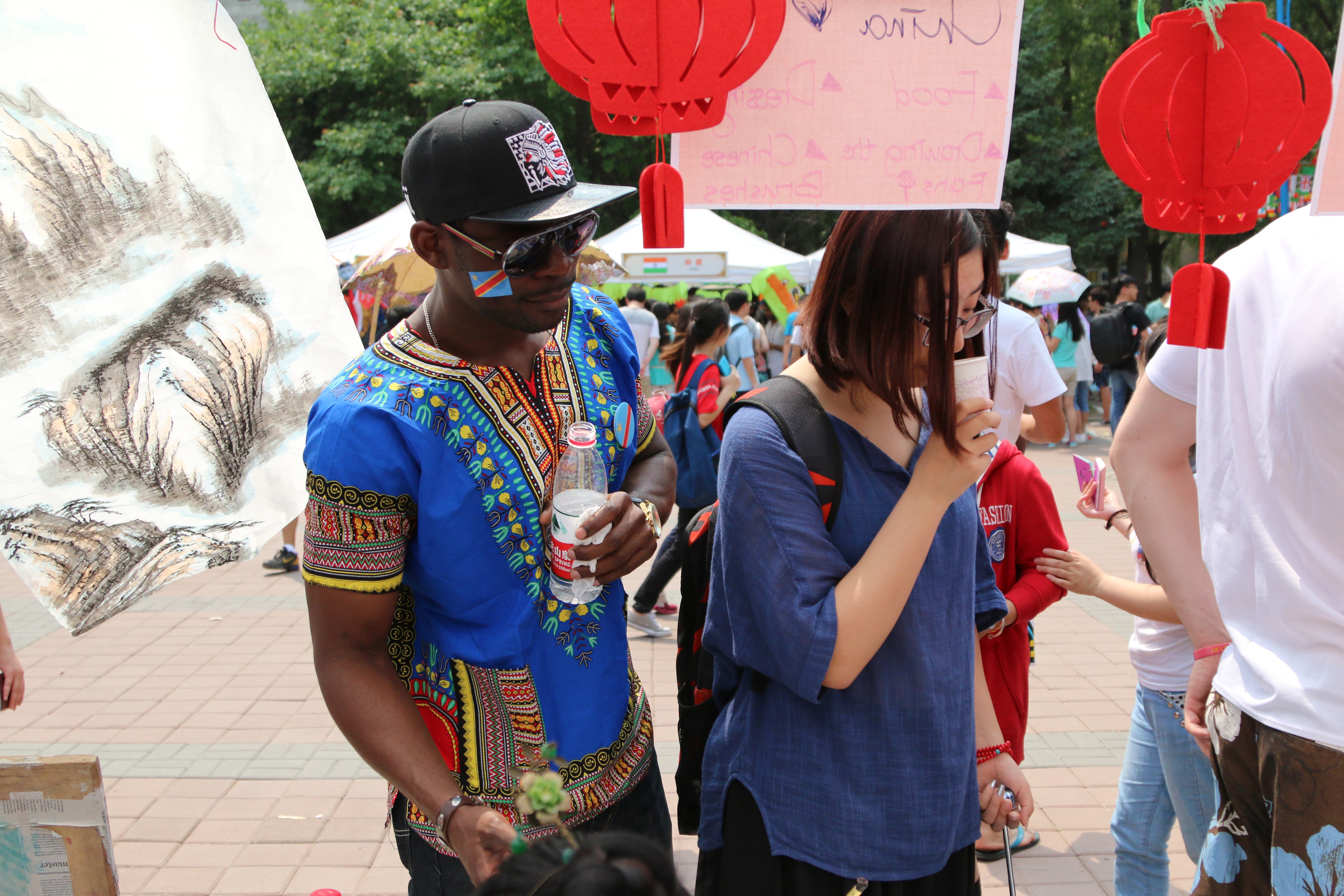今天天气十分炎热,文化日从早上十点开始,到傍晚六点结束。许多“Together”社团的同学全程参与,非常辛苦。甚至有作为工作人员负责引导体验者的女同学一直坚持在岗位,直到中暑才另让别的同学来替换。“Together”社团同学的献身投入让人为之感动。