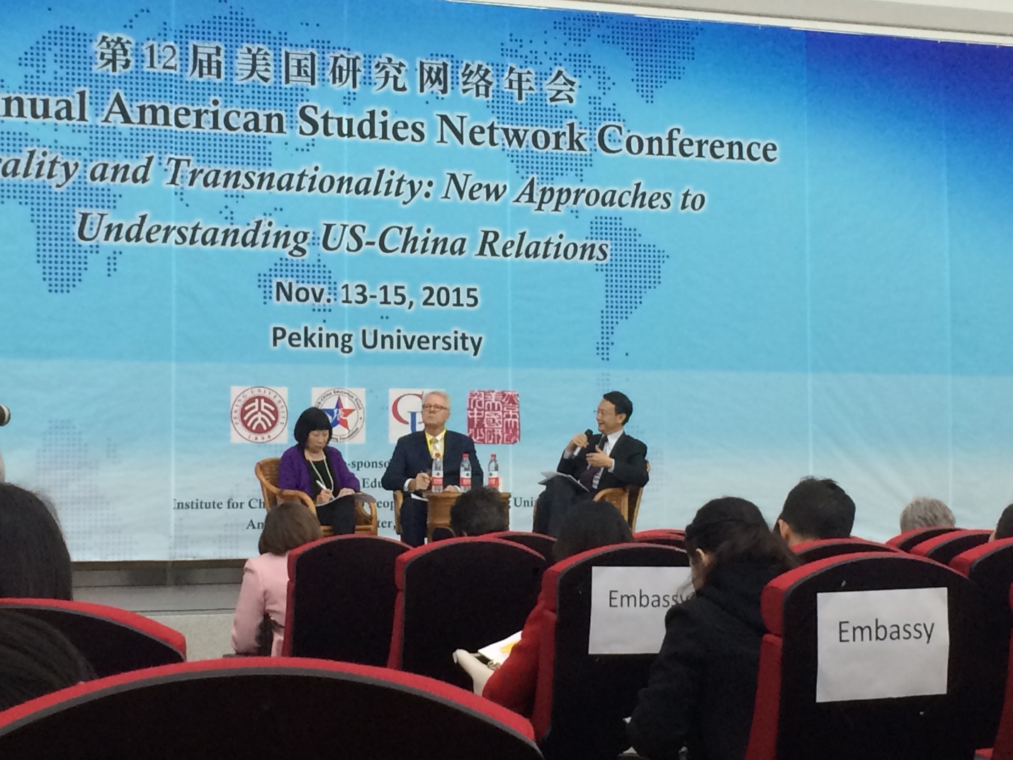 学生于2015年11月13日-15日参加了第12届美国研究网络年会“新途径去了解美中关系”。此次年会由美中教育机构、北京大学美国研究中心、北京大学共同举办,旨在为中美人民能够更好地沟通和交流。参加此次会议的嘉宾来自美国、以色列和中国的一些研究机构。