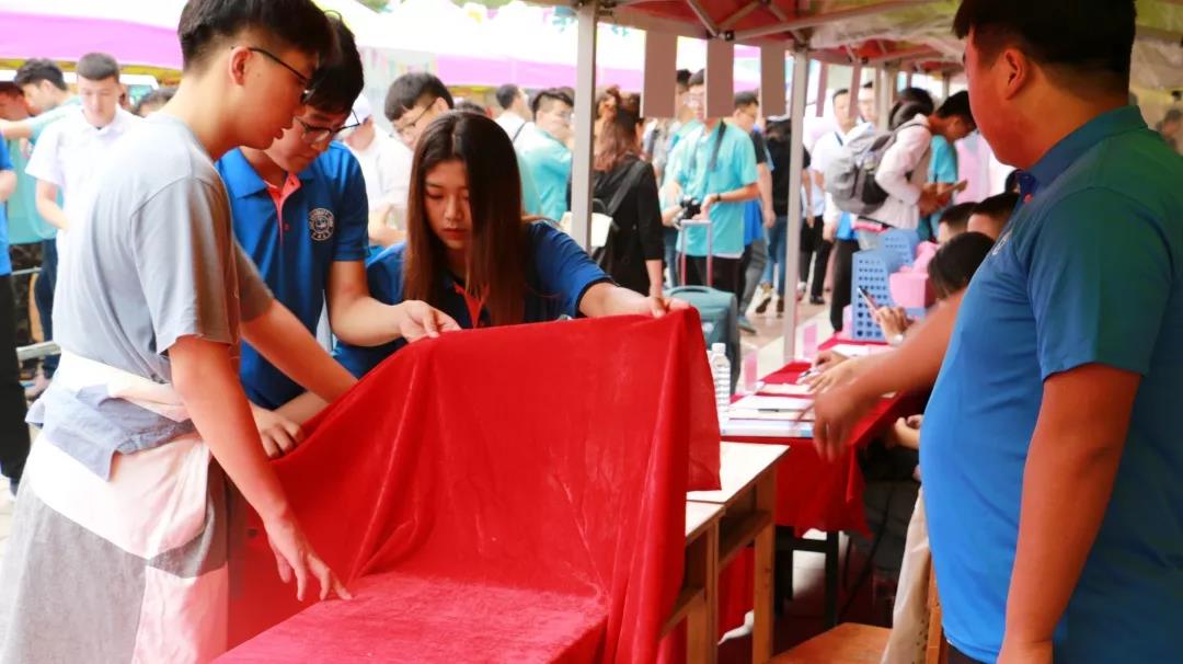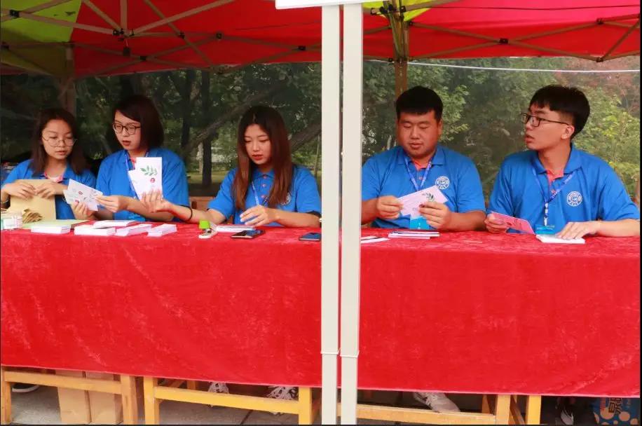 迎新工作站集合完毕,为未来两天的迎新接待工作做充分的前期准备。志愿者们分工明确,各司其职,顺利完成了桌椅搬运与摆放、迎新物资准备和迎新现场布置等相关工作。