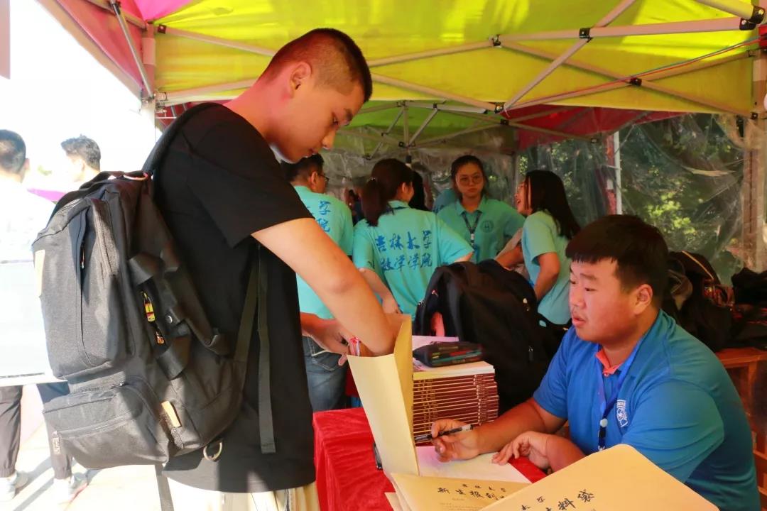 迎新接待站准时集合,并按照预先安排正式开始一天的迎新工作。新生资料的收集、迎新材料的发放、迎新流程完成后的现场签字确认等工作均有序进行。