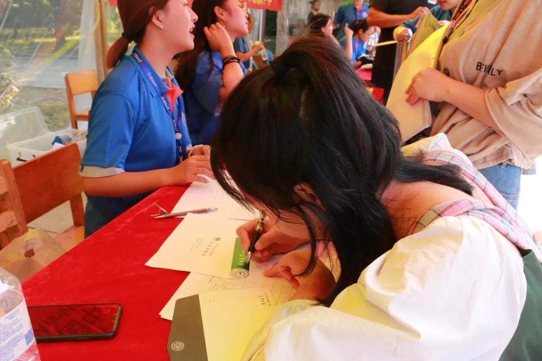 信纸上写下了自己刚刚步入大学生活时,对于未来大学生活的期许。这些期许将被装入信封,并在一年后返还给2019级同学。团委学生会还为新生准备了“天若有情天亦老,吉大外交真的好”“加入SIPA,SEI都不怕”等具有博彩App