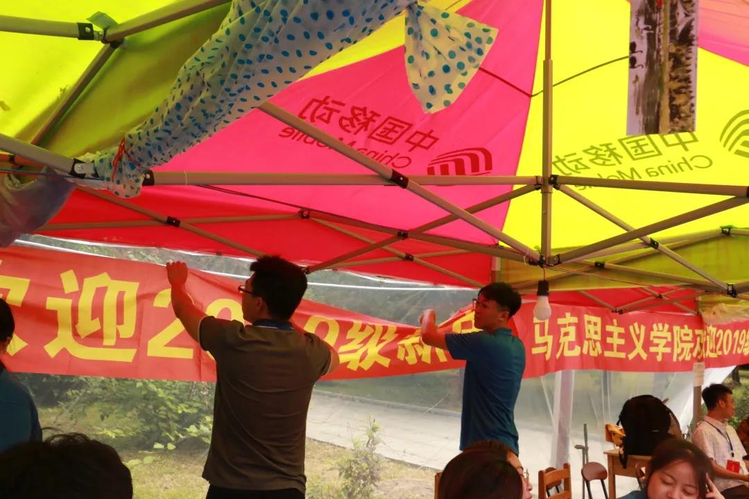 迎新接待站的标志性风景。为全程陪伴迎新活动的老师们和辛勤工作的志愿者们撒花!