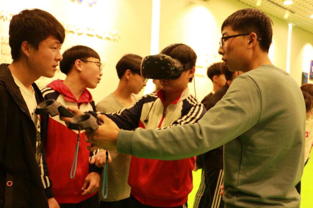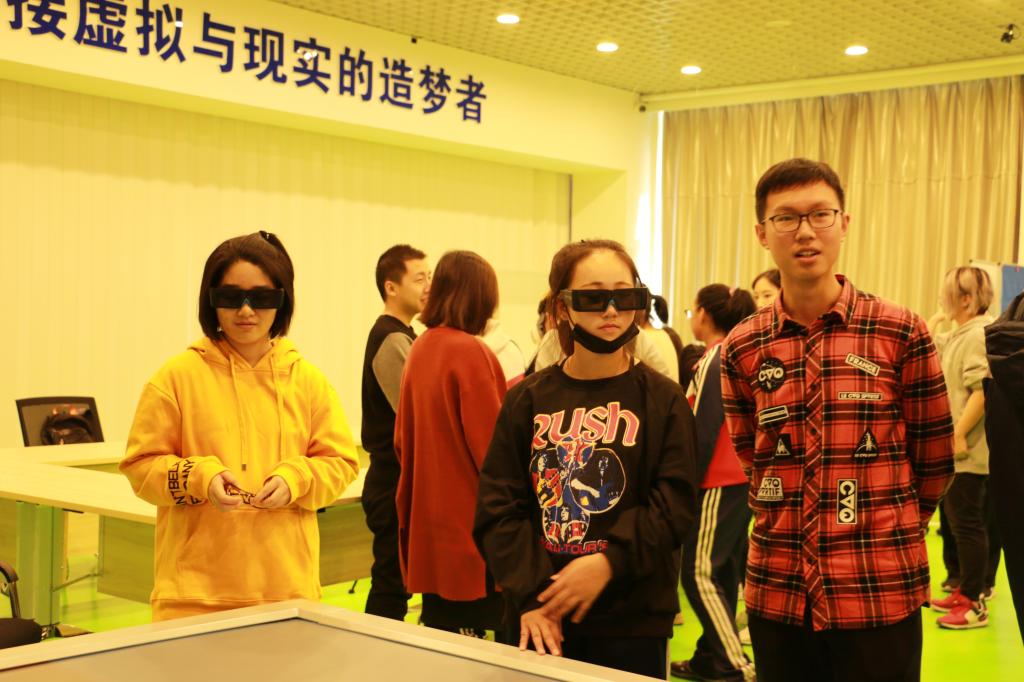 教师和学生的指导下,同学们迫不及待地戴上VR眼镜,亲身体验了科技感满满的VR虚拟现实技术,现场气氛热烈,所有同学都踊跃参与。