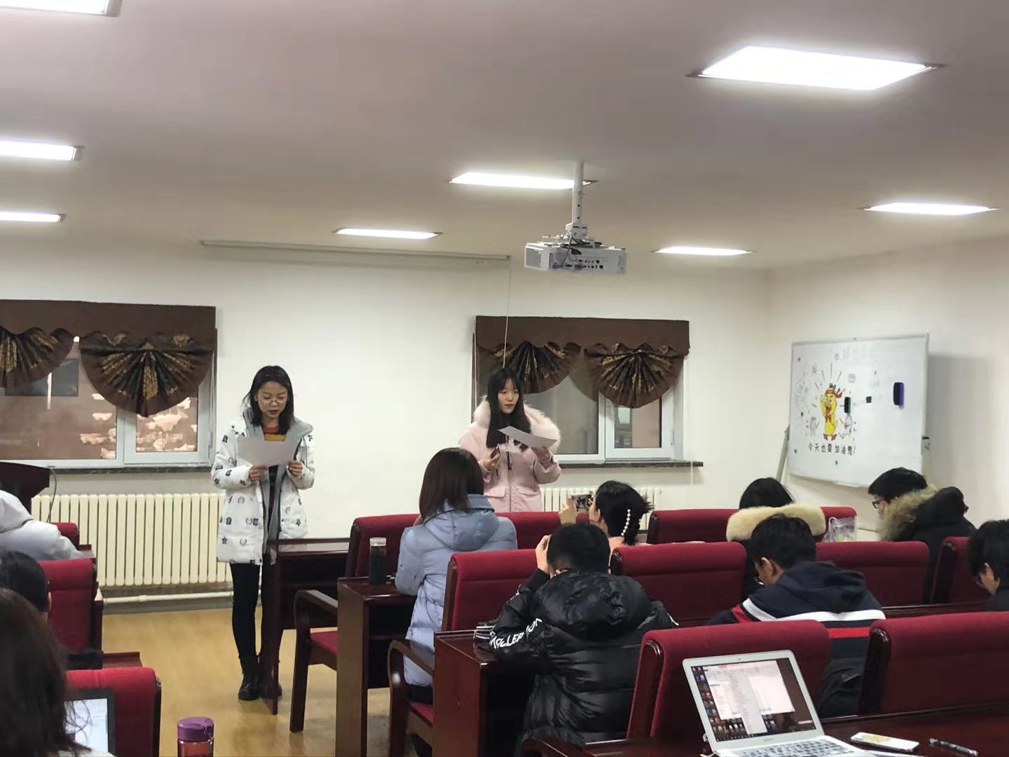 2018、2019年级大会在辅导员王力老师的主持下顺利开展。会上,王力老师就考试诚信问题、网络安全问题、寝室卫生问题、党员发展对象问题等做出了详尽的安排,并对近期博彩App
