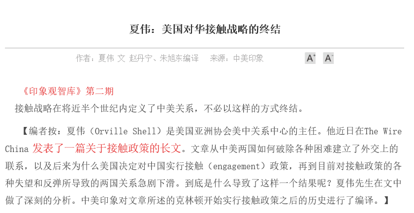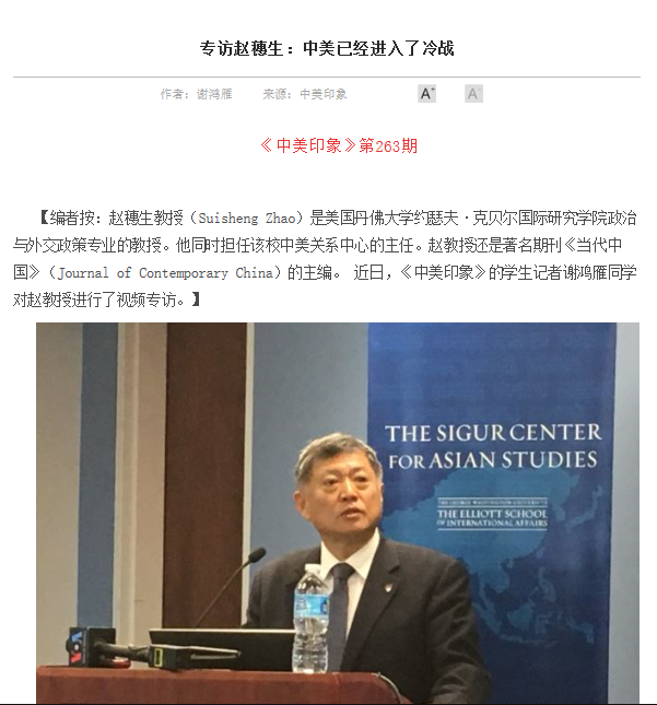 谢鸿雁:2020年暑期,我有幸入选为卡特中心中美印象网站的实习生,开展了诸如英文文章编译、协助学术会议举行、新媒体运营与维护、采访中美外交政策学者等工作。实习期间,最富有挑战性的工作当属线上专访丹佛大学赵穗生教授。在接到采访任务后,我广泛地研读了赵穗生教授的论文以及在学术会议上的演讲报告,了解赵教授的研究方向。而后,我开始草拟访谈提纲,确定问题,并就访谈问题的语言表达、逻辑顺序以及衍生问题精雕细琢。在采访开始前,由于初次接触采访工作,我十分紧张,担心自己不能完成此次工作任务。此外,时差以及网络问题等不稳定因素也增大了此次采访的难度。但是,采访开始后,赵教授亲切地与我寒暄交谈,询问我的学业情况以及未来规划,使我如沐春风。我的心情渐渐放松,紧张的情绪也被抛之脑后。采访过程中,赵教授就中美关系近期发展,客观分析了当下的国际局势,研判未来中美关系的走向,提出了许多真知灼见。采访结束后,我根据录音整理了访谈记录,发表于中美印象网站网,并被“政治学与国际关系论坛”公众号转载,圆满完成了此次采访工作。