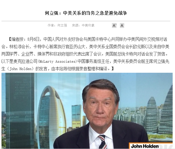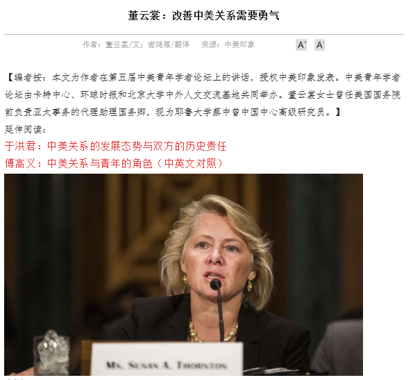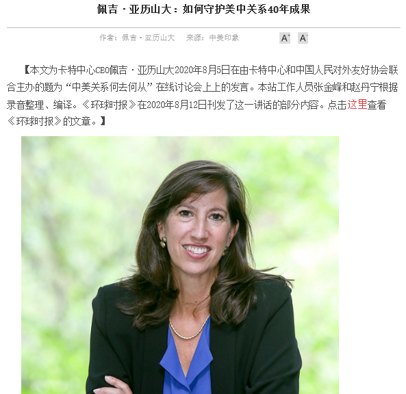 赵丹宁:2020年暑假期间,我有幸参加了中美印象网站实习项目。实习中最难忘的应属旁听学术会议并协助会议记录整理的经历。面对当今中美间的种种问题,卡特中心作为致力于促进国际冲突和平解决的非营利性组织,邀请两国多领域的专家组织了多场学术会议,针对相关议题展开对话交流,破除偏见和误解,并寻求积极和平的解决办法。作为实习记者,我们有幸旁听会议讨论并分别根据录音整理和编译会上学者发言和主要观点。令我感触颇深的是学者们普遍认同:中美之间需要增进彼此之间开诚布公的交流,紧张局势下一味退缩或者针对对方进行煽动性的行为都不能解决实际问题。不同于网络上的悲观主义,学者们对于当今中美关系理性与积极的思考,使我豁然开朗。这不仅激发了自己跳脱思维禁锢、从多元角度思考中美关系未来走势,更期待着两国增进开诚布公的对话,作为时代“后浪”见证双边关系在破中求立,以和平的方式、开放的态度解决当下的困境。