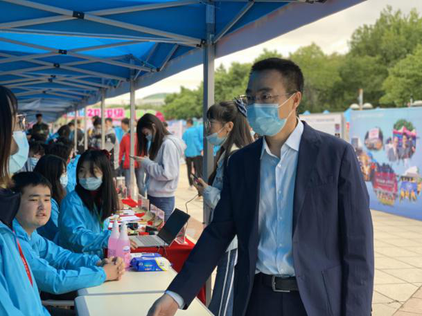 党委书记姜治莹、校长张希分别来到迎新现场检查工作,向博彩App