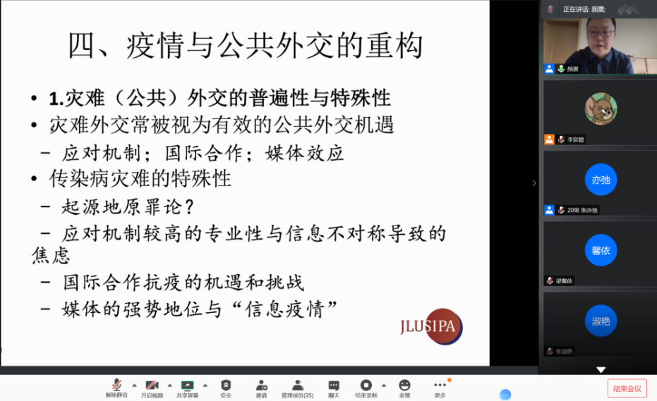 青年教师颜震围绕“后疫情时代中国公共外交的展望”这一主题,分享了他的看法和见解,并与同学们展开深入交流。博彩App