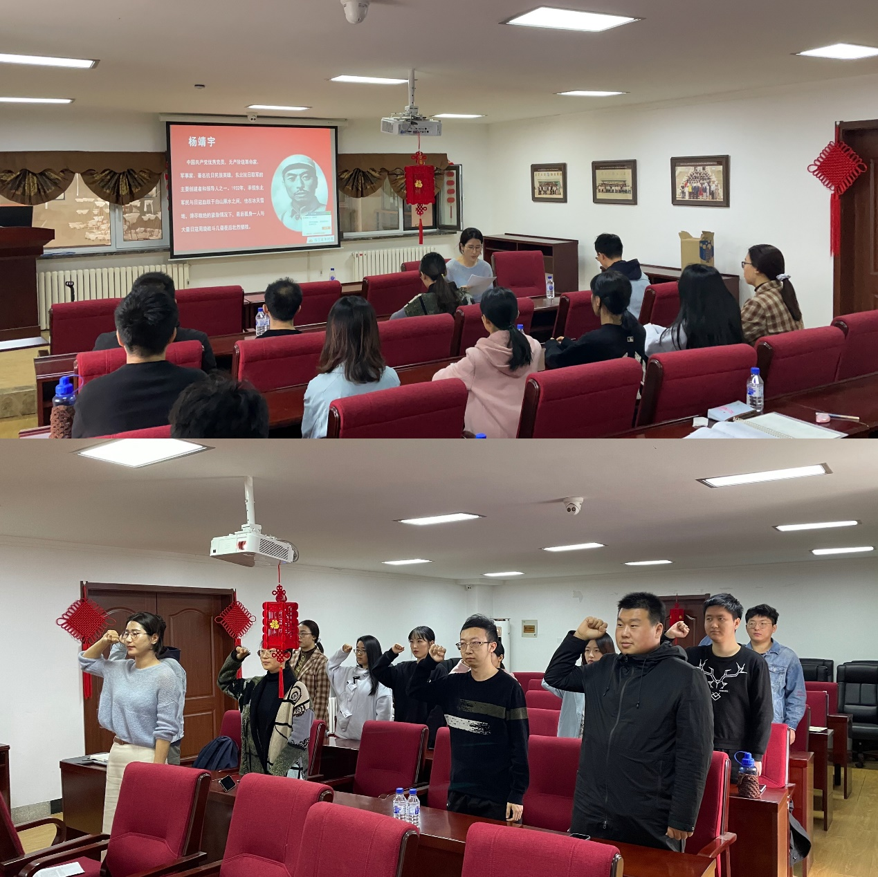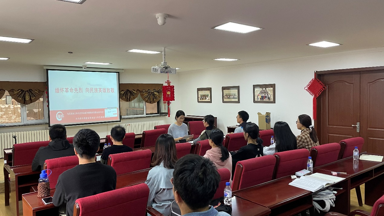学生党支部组织学生党员在行政楼214会议室,开展清明节缅怀先烈的活动。活动共包含三个部分,第一部分是学习习近平总书记关于崇尚英雄、缅怀英烈的重要论述。总书记曾在多个场合讲述英雄事迹、致敬英雄精神,本次活动中,党员同志们通过视频的方式,在总书记讲话的过程中缅怀先烈,致敬英雄。第二部分是云祭扫缅怀杨靖宇英雄。在纪检委员宁煊同志的带领下,与会党员一起回顾了杨靖宇同志的英雄事迹,并进行了缅怀英雄的活动。总书记曾强调:“一个有希望的民族不能没有英雄,一个有前途的国家不能没有先锋。”通过对英雄事迹的学习,激励党员同志们更加奋发努力。第三部分是重温入党誓词。与会党员在宁煊同志的带领下,重温入党誓词,不忘初心,牢记使命。