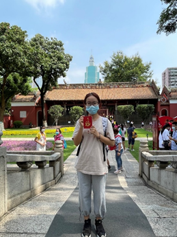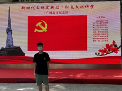 8月1日,正值“八一”建军节,秦本楚玥先后前往广州市的黄埔军校旧址、中共三大会址纪念馆、农讲所、广州起义纪念馆和烈士陵园,开启了她的红色之旅。一路下来,她通过查阅资料、聆听讲解等方式认真学习了国民大革命这段历史,深刻体会到广州这座英雄城市在国民革命时期的重要地位。结合自身中学时期在国防班的经历,再加上黄埔军校“亲爱精诚、团结合作、为国爱民、不怕牺牲”校风的熏陶,秦本楚玥更进一步加深了作为共产主义事业接班人的使命感。