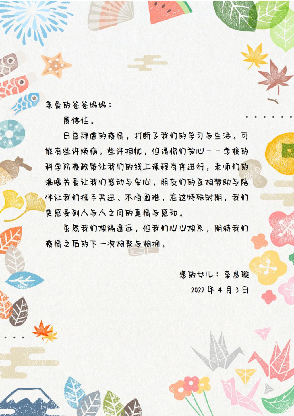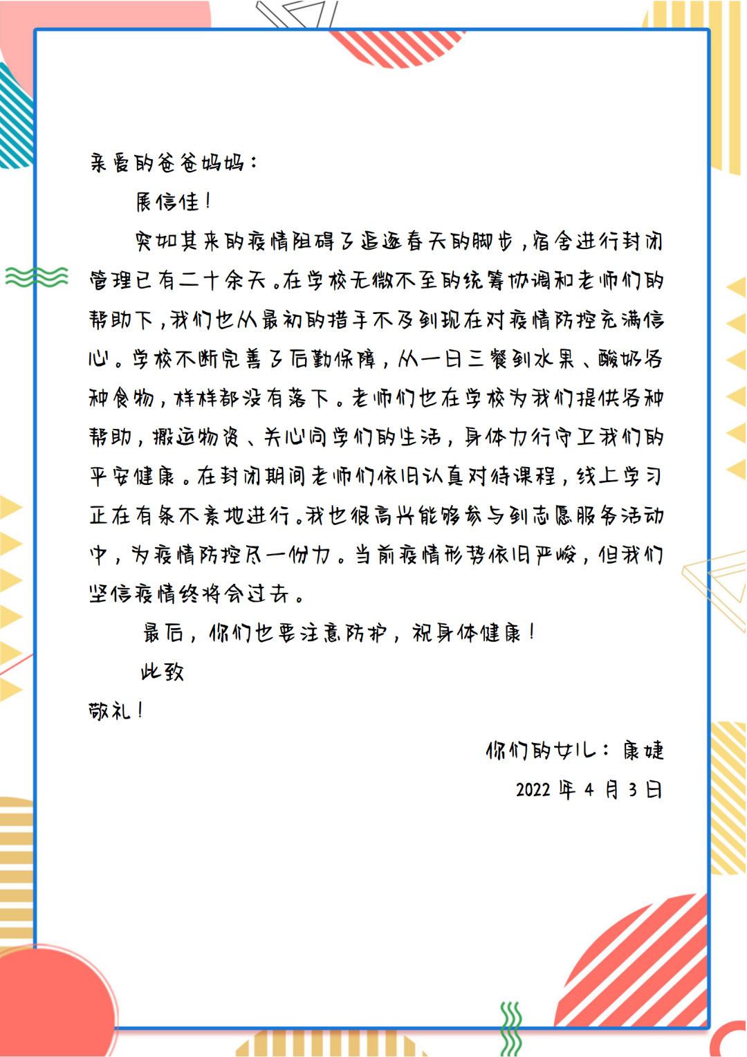 驿寄梅花,鱼传尺素,家书承载着我们对远方亲人的思念,维系着人间真情。为了弘扬传统美德,增强家校情感互动,坚定疫情防控决心,博彩App