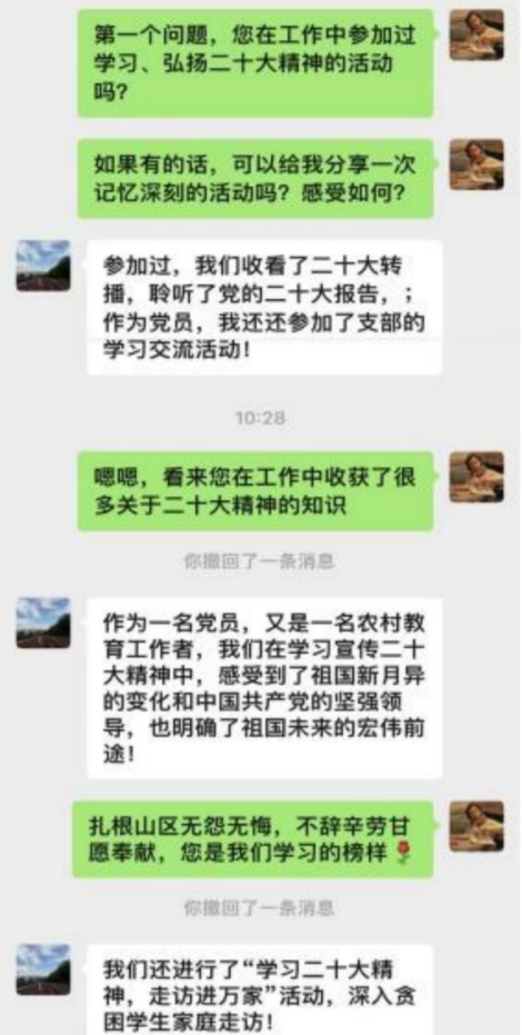 吕孝阳、孙新燕、康婕等四名同学组成“学习宣传二十大,争做时代好青年”实践团,邀请乔蕊老师为实践开展进行具体指导,通过线上线下相结合的方式开展了一系列实践活动。