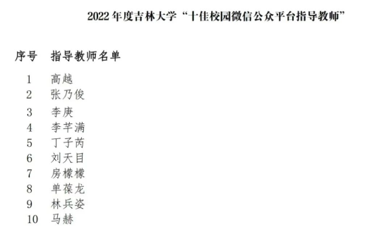 “十佳校园微信公众平台指导教师”