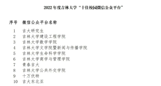 “十佳校园微信公众平台”。