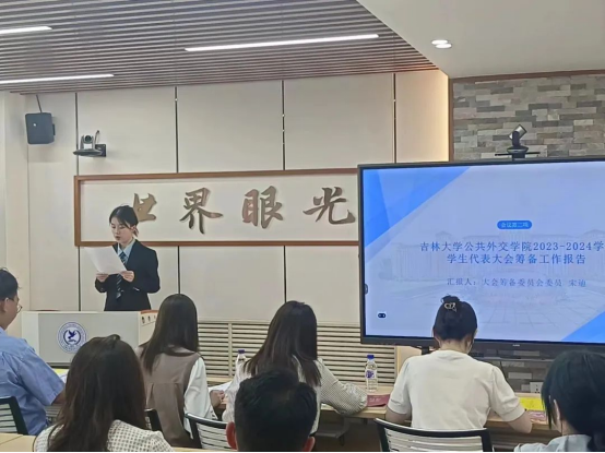 在吕振羽楼818会议室召开2023-2024学年学生代表大会,集体表决通过第八届团委、学生会工作报告,并顺利完成第九届团委、学生会主要学生干部换届选举工作。全院34名学生代表参加了会议,研究生与留学生工作办公室主任王庆老师,学生工作办公室主任、纪委委员张淑艳老师,团委负责人单葆龙老师,研究生秘书于晴老师出席会议。本次大会由博彩App