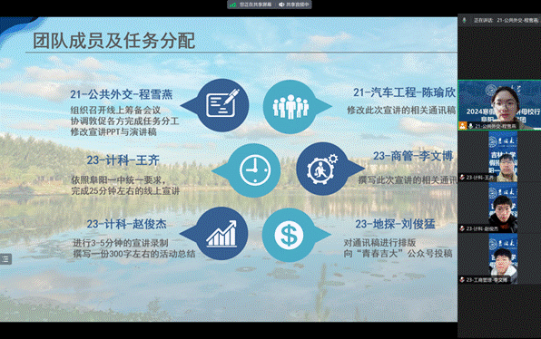 本科生吴欣怡带领其“吉雁南归”团队成员来到铜陵三中117班参与宣讲活动,团队成员引用自身经历和感受,与在场同学热情互动,条理清晰地向高中生们传授了学习经验,讲解了吉大办学特色及生活学习体验,提供吉大最新动态和发展趋势,鼓舞了处于迷茫期的高中生们。